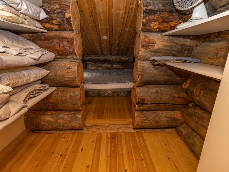 Majoitustilat sisältävät alakerrassa makuualkoven (ei ovea), jossa on 120 cm leveä sänky. Parvella on makuusoppi kahdelle sekä avoparvella kolme runkopatjaa, yhteensä majoitusmahdollisuudet kuudelle henkilölle. Mökissä on lisäksi tupakeittiö ja mukava sähkösauna rentoutumiseen.