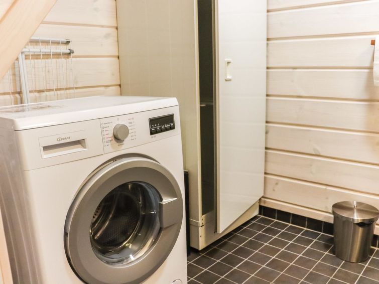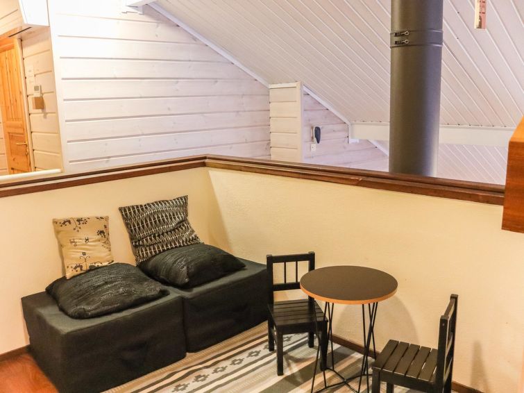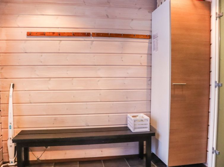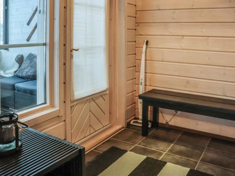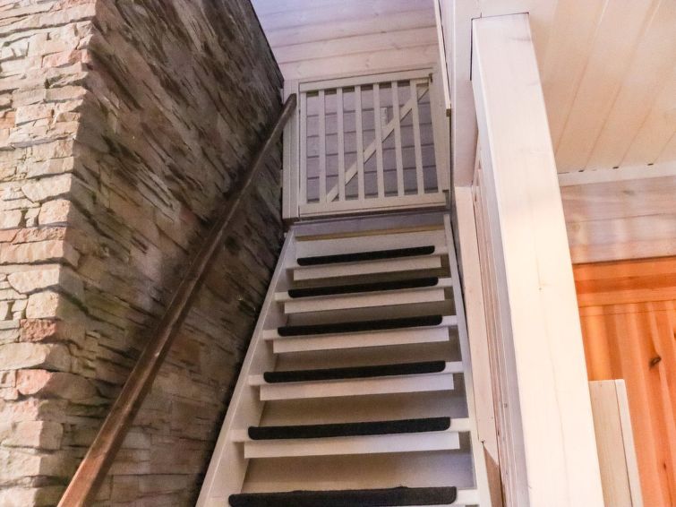 Safety gates at the top and bottom of the stairs, cot, 2 high chairs, BabyBjörn bouncer, potty and small play corner for children. Air source heat pump, wifi. Ukkohalla: Tourism centre located by Lake Syväjärvi, with an information centre, store, restaurant, spa, slope centre, snowmobile tracks, ski tracks, programme services, beach (further information at www.ukkohalla.fi). Distance to the Ukkohalla services 0.7 km. Kajaani airport 86 km, Oulu 170 km, Helsinki 650 km, bus stop Hyrynsalmi 18 km, railway station Kontiomäki 66 km.