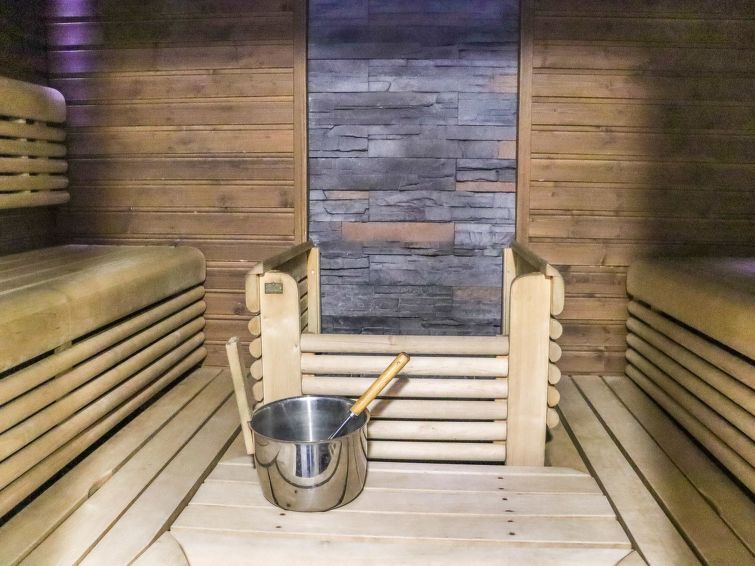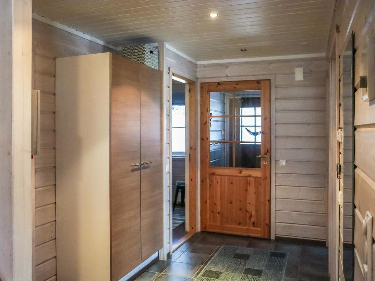 Kitchen, 5 bedrooms, loft, sauna, shower room/toilet, 2 separate toilets, dressing room, vestibule, terrace, storage, fireplace and firewood. 4 bedrooms with 2 x 80 cm beds/room, 140 cm double bed in one of the bedrooms, 4 spare mattresses on the loft. Small office space in one of the bedrooms upstairs.