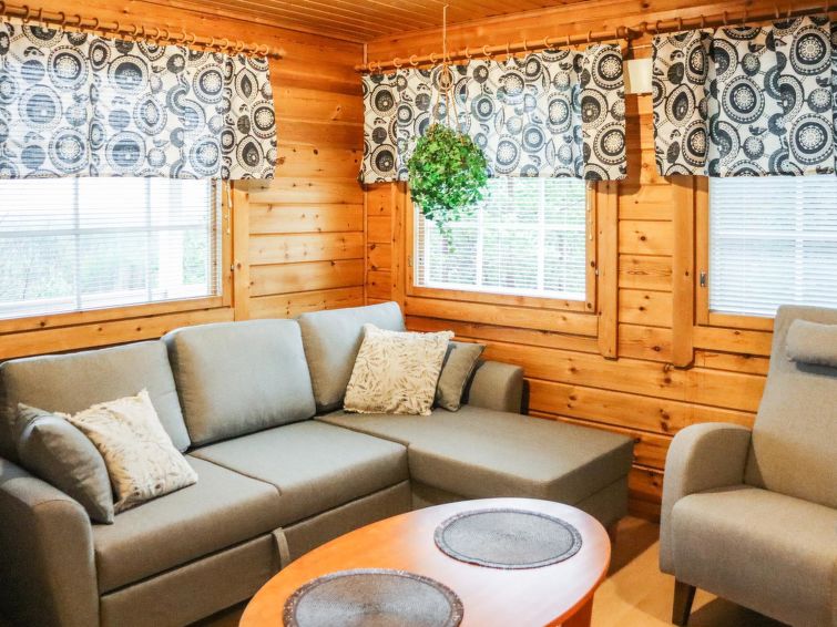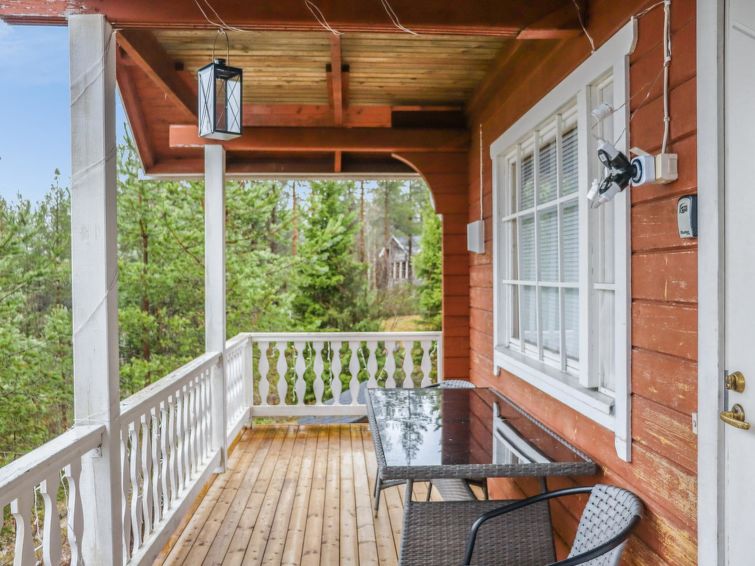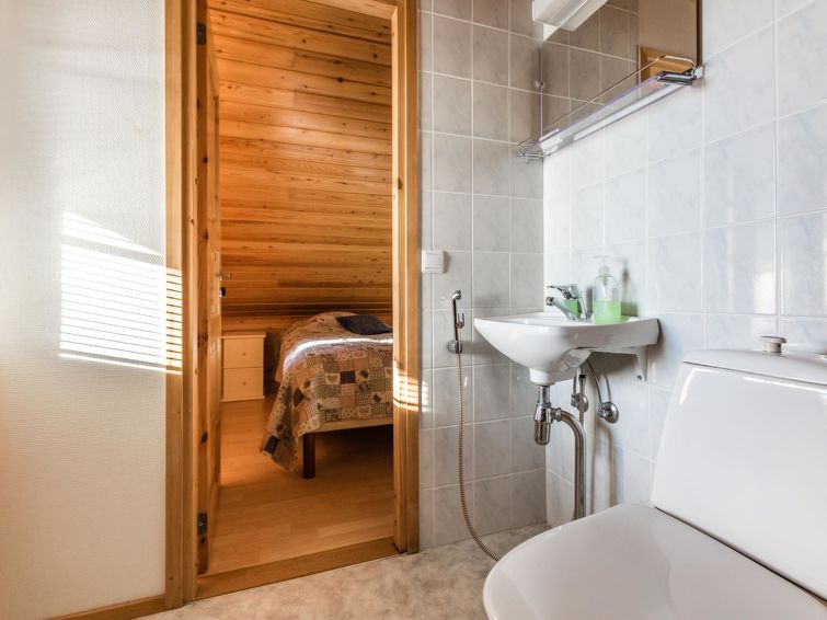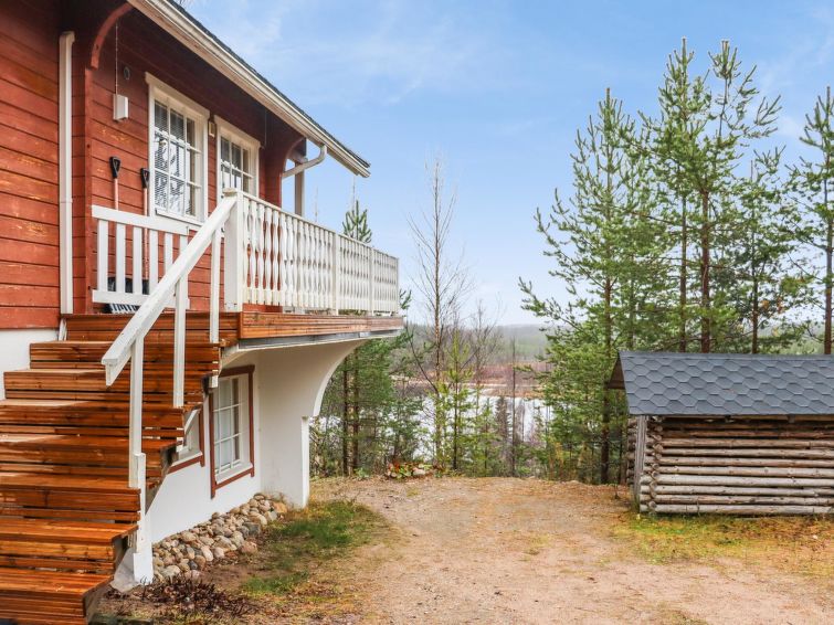 Ukkohalla: Tourism centre located by Lake Syväjärvi, with an information centre, store, restaurant, spa, slope centre, snowmobile tracks, ski tracks, programme services, Cable Wakeboard, beach (further information at www.ukkohalla.fi). Disatnce to the Ukkohalla services 0.7 km. Kajaani airport 86 km, Oulu 170 km, Helsinki 650 km, bus stop Hyrynsalmi 18 km, railway station Kontiomäki 66 km. Pets prohibited, beautiful view over the slopes and Lake Syväjärvi.