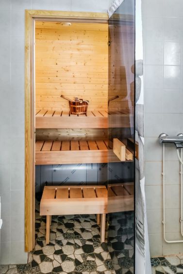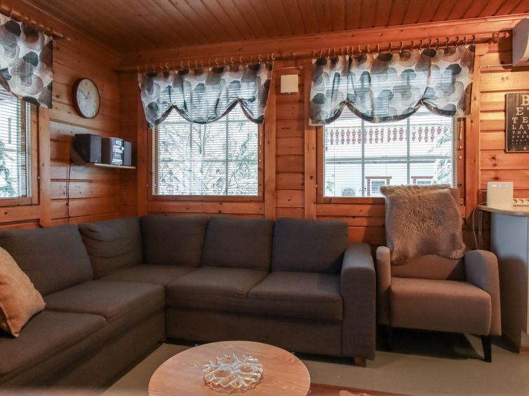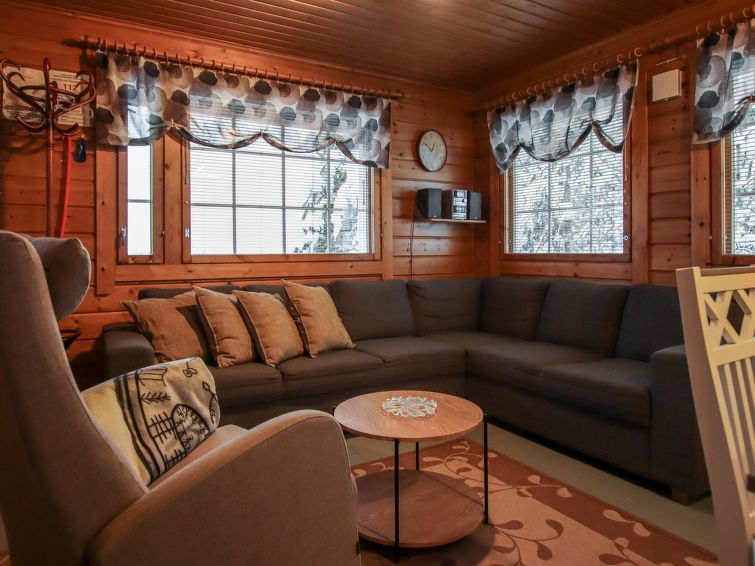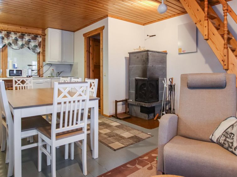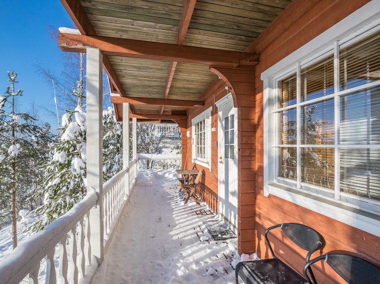 Ukkohalla: Tourism centre located by Lake Syväjärvi, with an information centre, store, restaurant, spa, slope centre, snowmobile tracks, ski tracks, programme services, Cable Wakeboard, beach (further information at www.ukkohalla.fi). Disatnce to the Ukkohalla services 0.7 km. Kajaani airport 86 km, Oulu 170 km, Helsinki 650 km, bus stop Hyrynsalmi 18 km, railway station Kontiomäki 66 km. Pets prohibited, beautiful view over the slopes and Lake Syväjärvi.