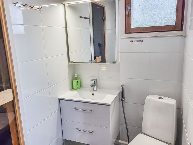 Price includes 1 bag of firewood. Extra wood from caretaker 10 euroa/bag. Ukkohalla: Tourism centre located by Lake Syväjärvi, with an information centre, store, restaurant, spa, slope centre, snowmobile tracks, ski tracks, programme services, Cable Wakeboard, beach (further information at www.ukkohalla.fi). Disatnce to the Ukkohalla services 0.7 km. Kajaani airport 86 km, Oulu 170 km, Helsinki 650 km, bus stop Hyrynsalmi 18 km, railway station Kontiomäki 66 km. Pets prohibited. Beautiful view over the slopes and Lake Syväjärvi. Cottage is available at 4.00pm on arriving day - till 12.00 on departure day.
