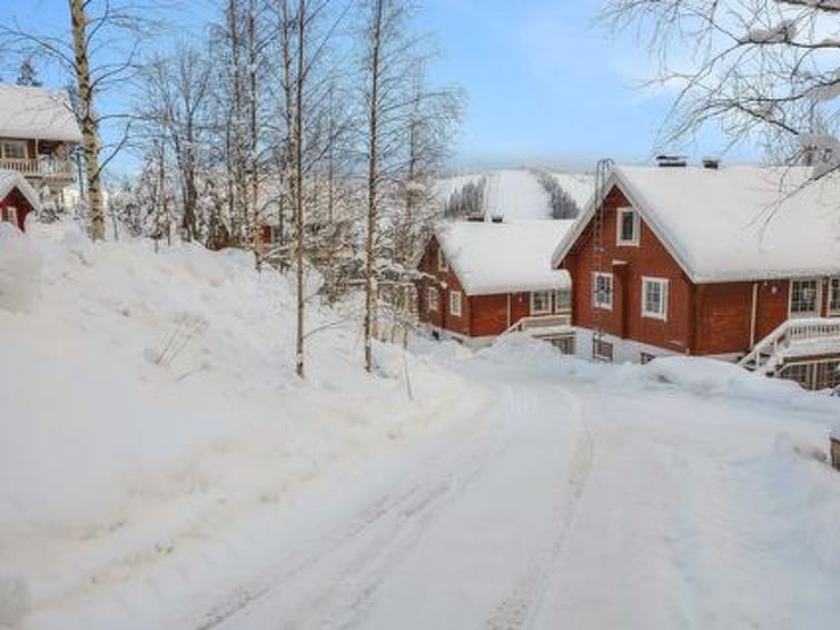The upstairs of a semi-detached house located in the Ukkohalla tourism centre, 8 + 2 persons, 75m2, built in 1990. Kitchen, 3 bedrooms, sauna, shower room/toilet, separate toilet, balcony, terrace, fireplace. A double bed in the bedroom downstairs, 3 beds in the bedroom upstairs. Free wifi. Apple tv and xbox.