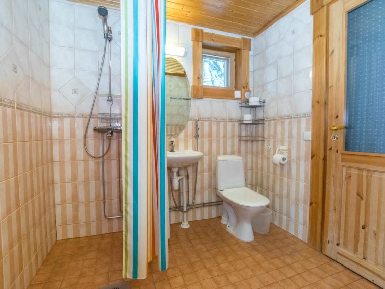 Price includes 1 bag of firewood. Extra wood from caretaker 10 euroa/bag Ukkohalla: Tourism centre located by Lake Syväjärvi, with an information centre, store, restaurant, spa, slope centre, snowmobile tracks, ski tracks, programme services, beach (further information at www.ukkohalla.fi). Distance to the Ukkohalla services 1.0 km. Kajaani airport 86 km, Oulu 170 km, Helsinki 650 km, bus stop Hyrynsalmi 18 km, railway station Kontiomäki 66 km. Pets allowd, view over the slopes.