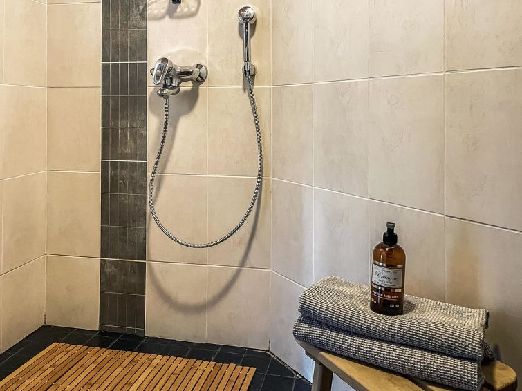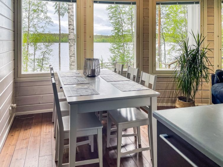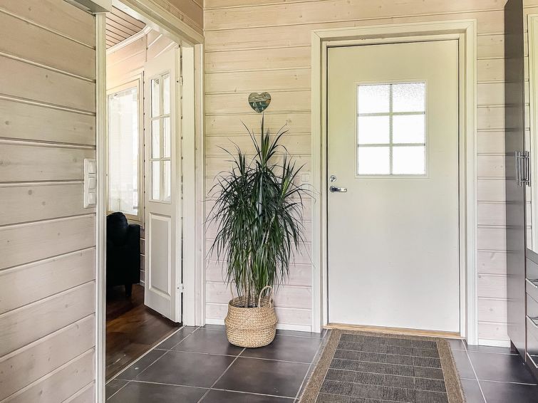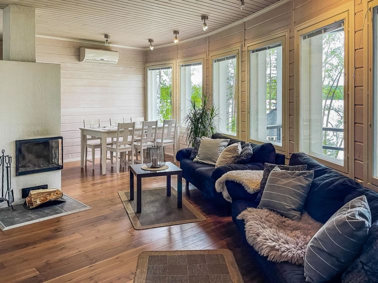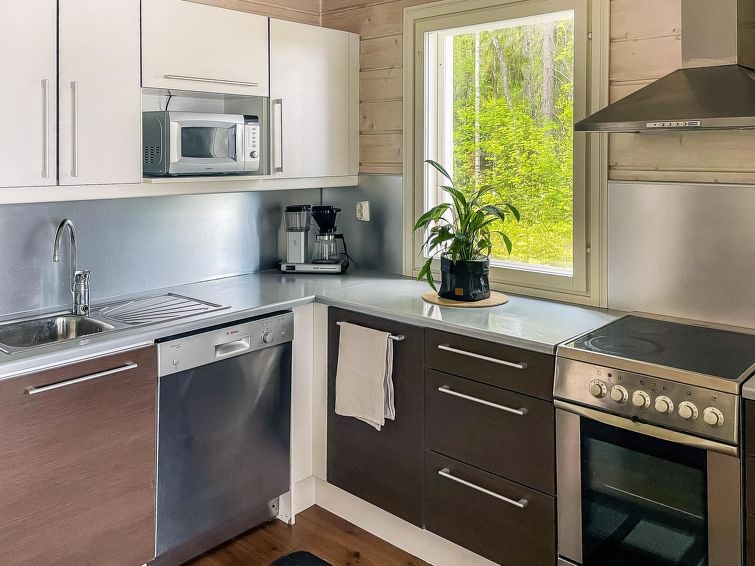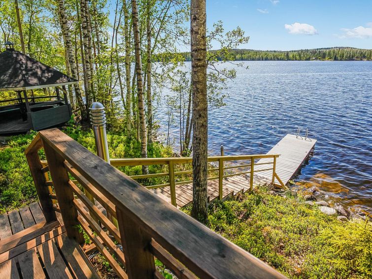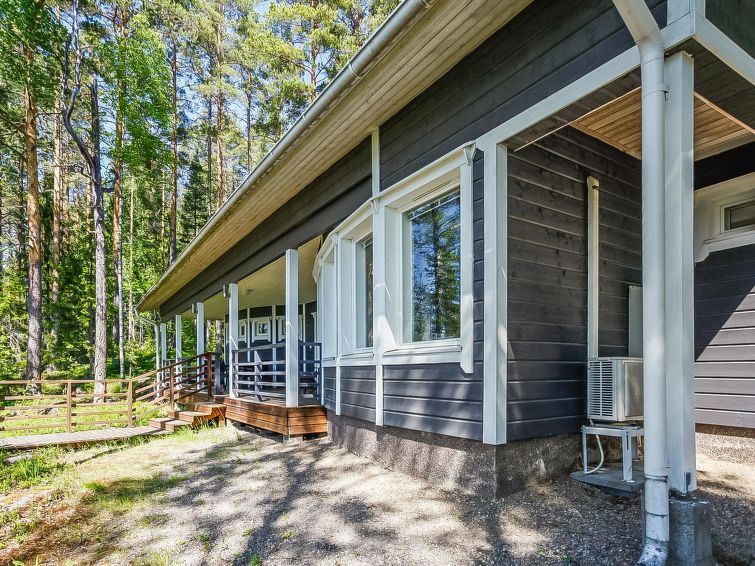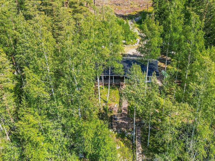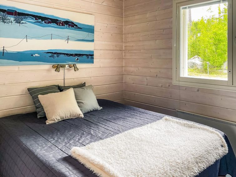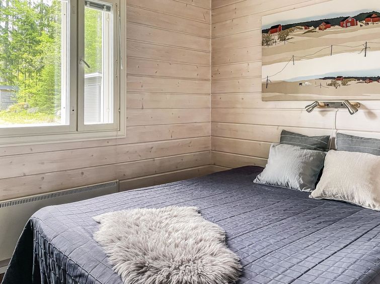 The living room has dining area, well-equipped kitchen, two bedrooms, both with double bed. Wood-burning sauna stove in the sauna, shower in the washroom, sofa bed for two in the fireplace room, WC. Air source heat pump for cooling. Gas grill and table group on the covered terrace. Outdoor kitchen in the cooking hut for cooking by water. You can ask the owner to rent an outboard motor for a rowing boat and a portable hot tub for bathing. Hot tub is shared with four cabins, the price is 80 euros/day when brought to the place, 130 euros for the weekend. Payment in cash directly to the owner.
