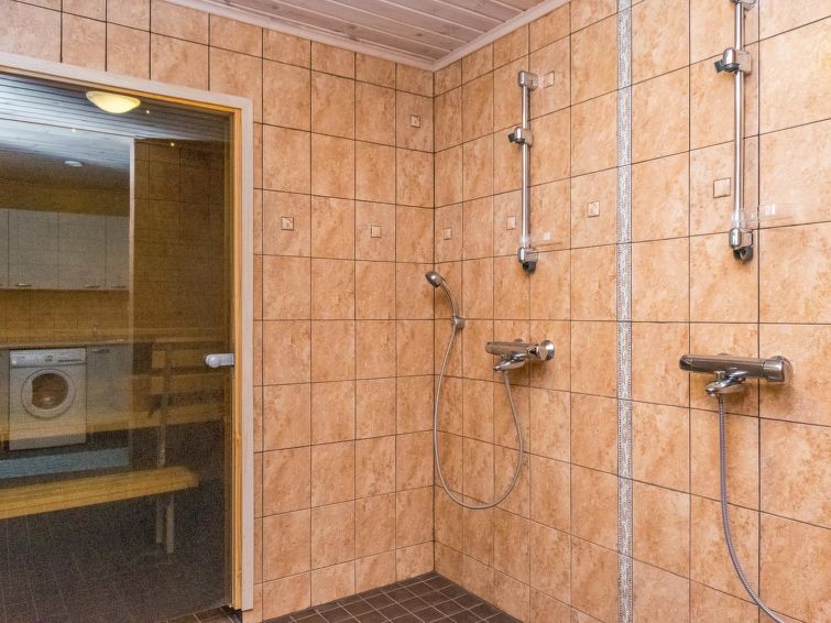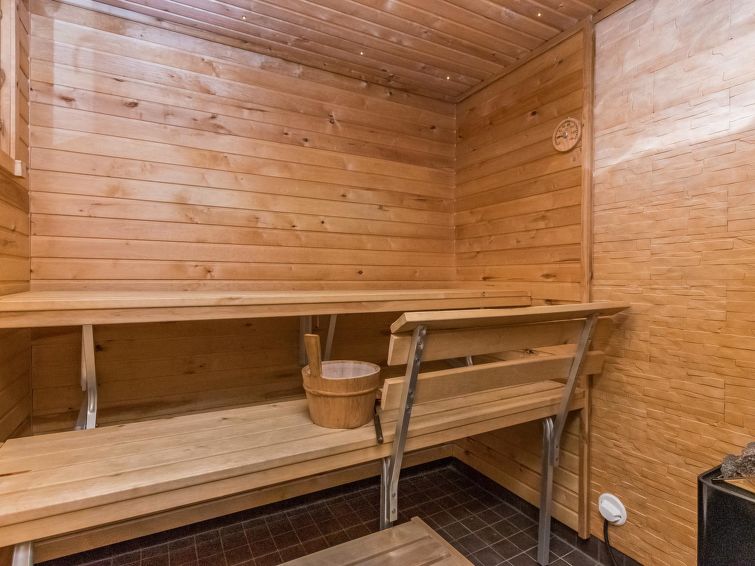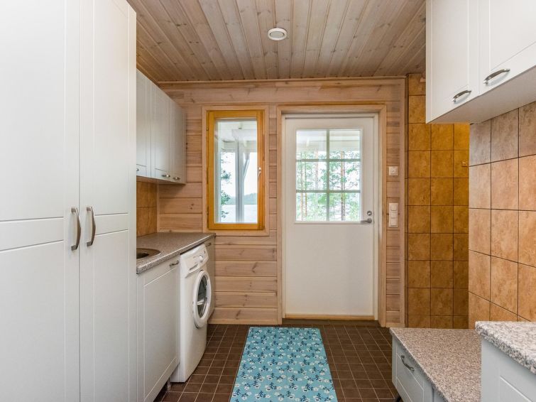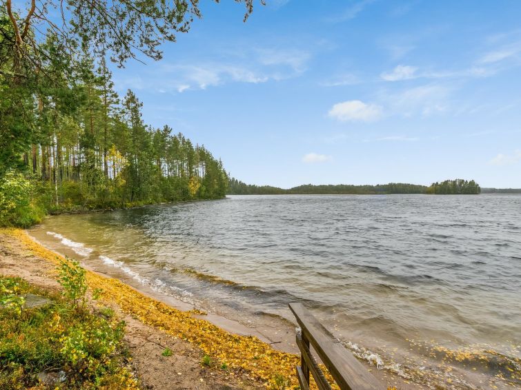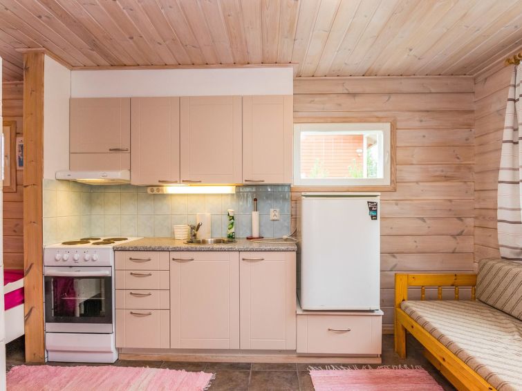 Lakeside sauna (30m²) with wood-burning sauna stove and shower, kitchen/living room, bedroom (7m²) with two beds. The lakeside sauna is not available in winter (1.11.-313.), except by separate agreement.