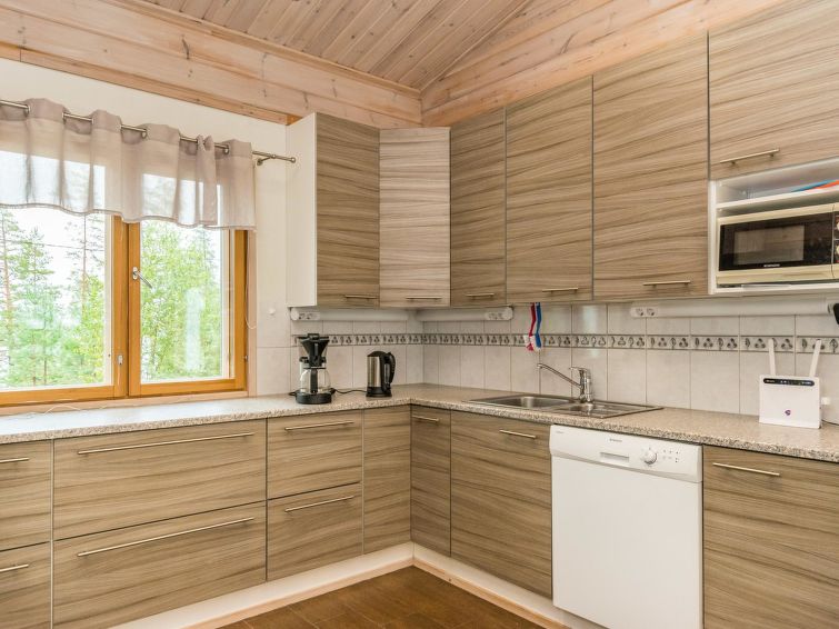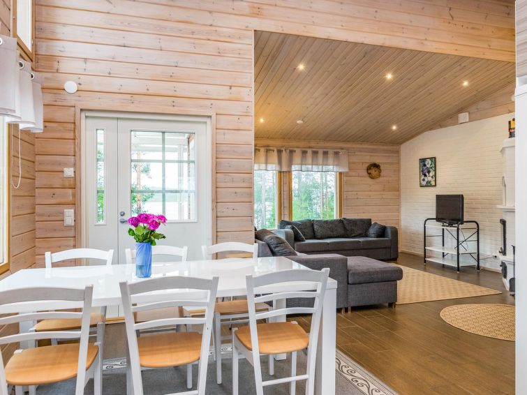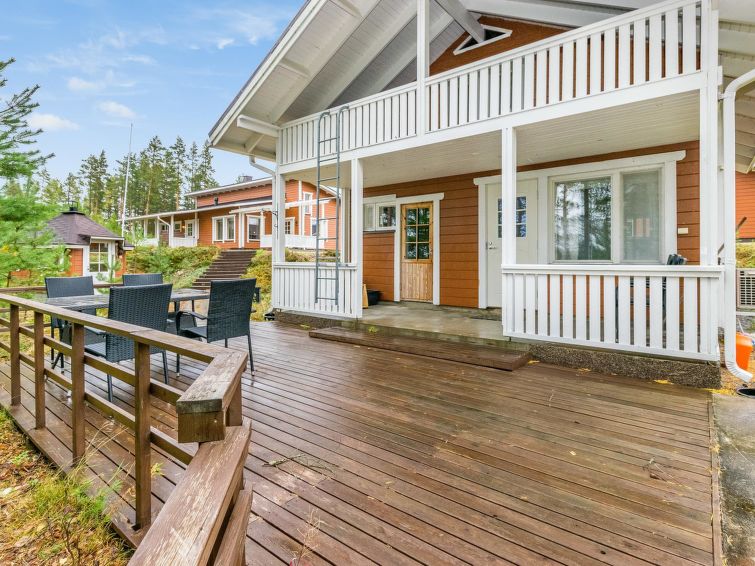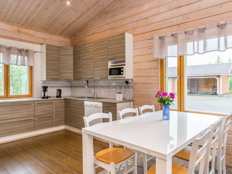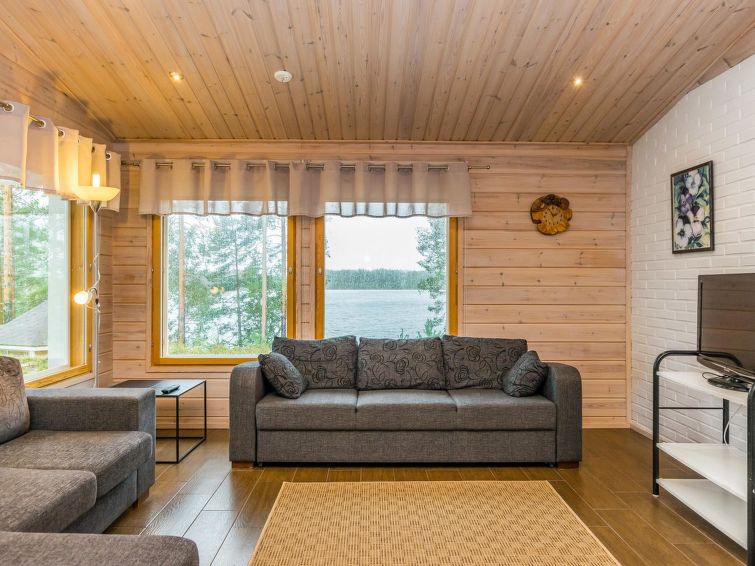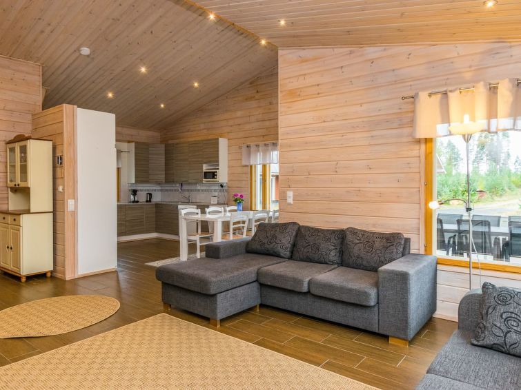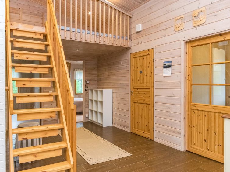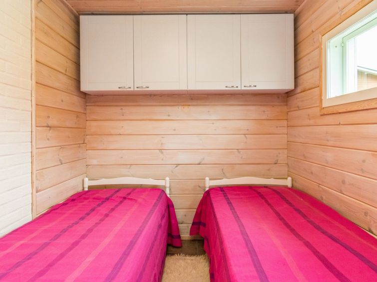 Wooden holiday home 2013, kitchen, living room with sofa bed for two, two bedrooms, one with double bed and another with two beds, dressing room / utility room, washroom, sauna (electric sauna stove), separate WC, loft, covered terrace.