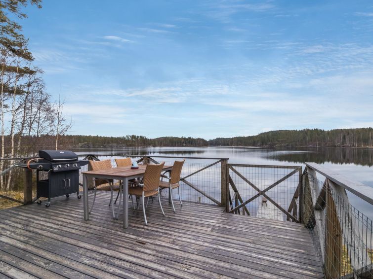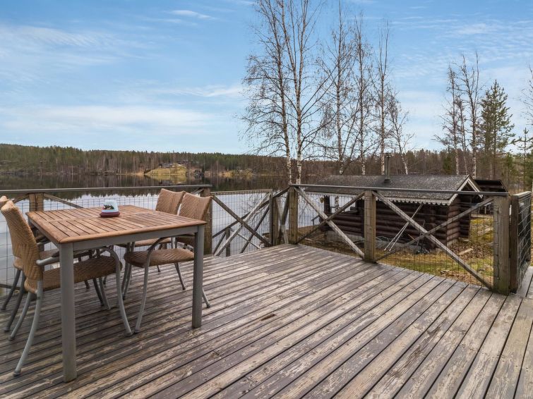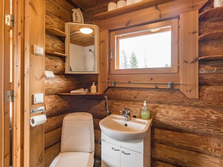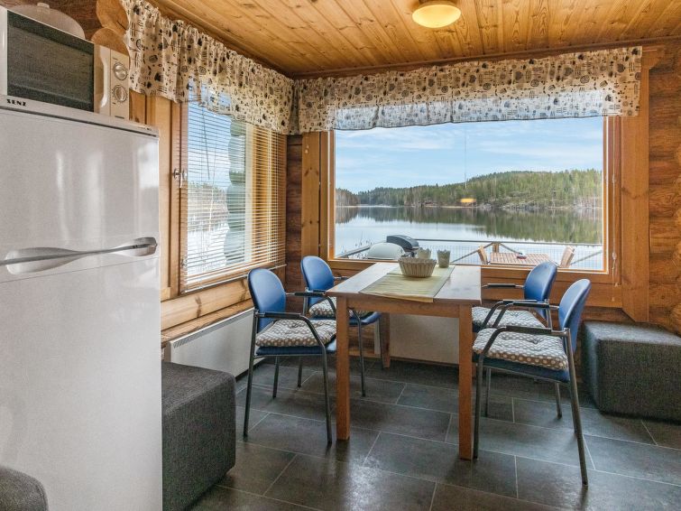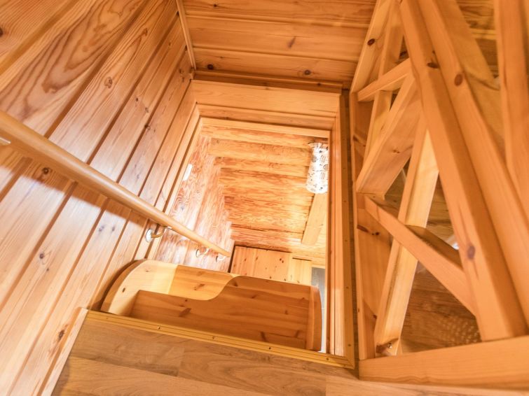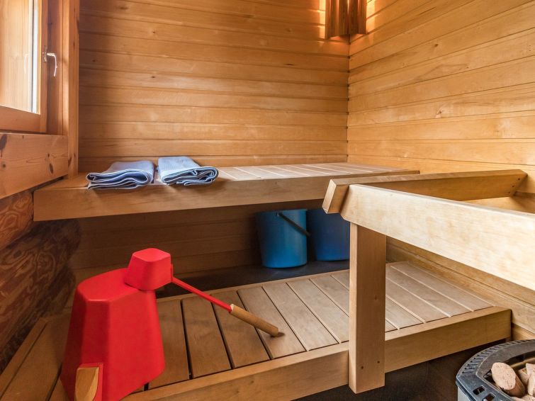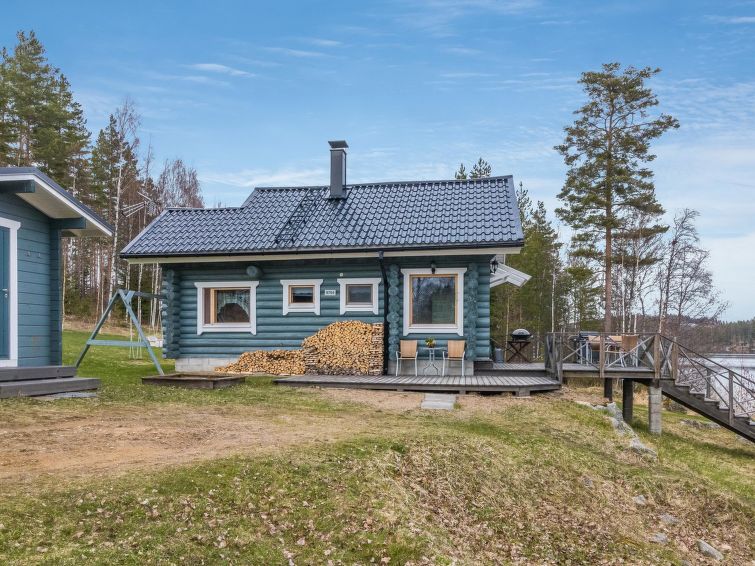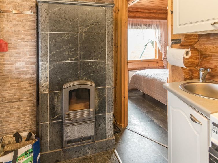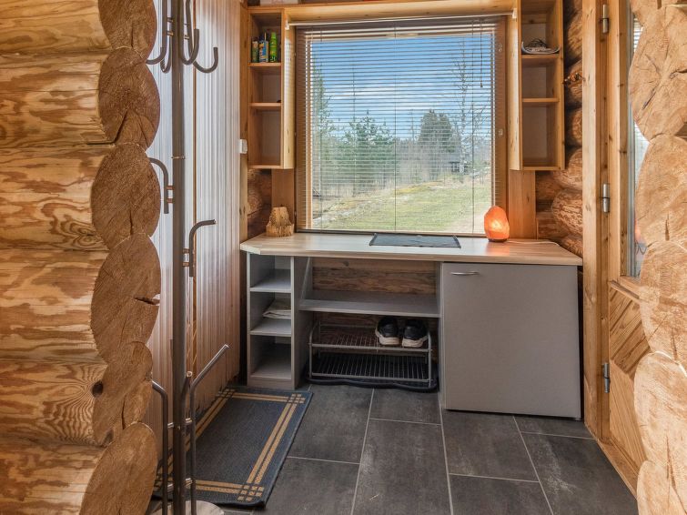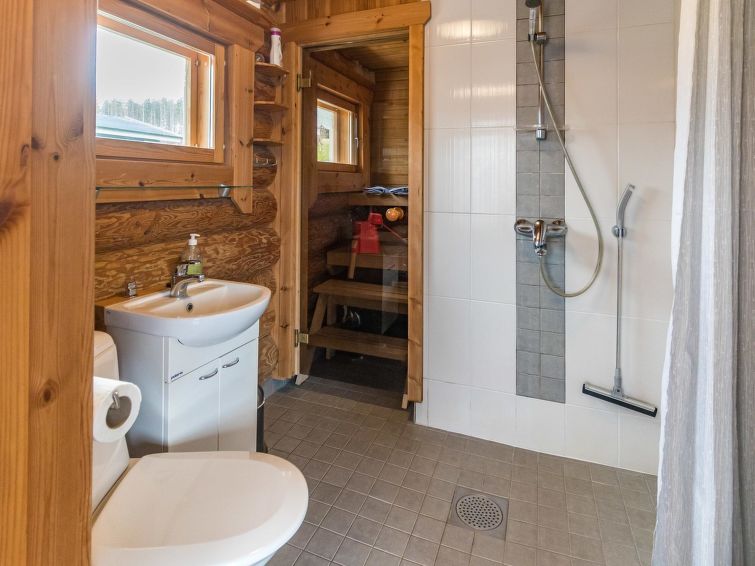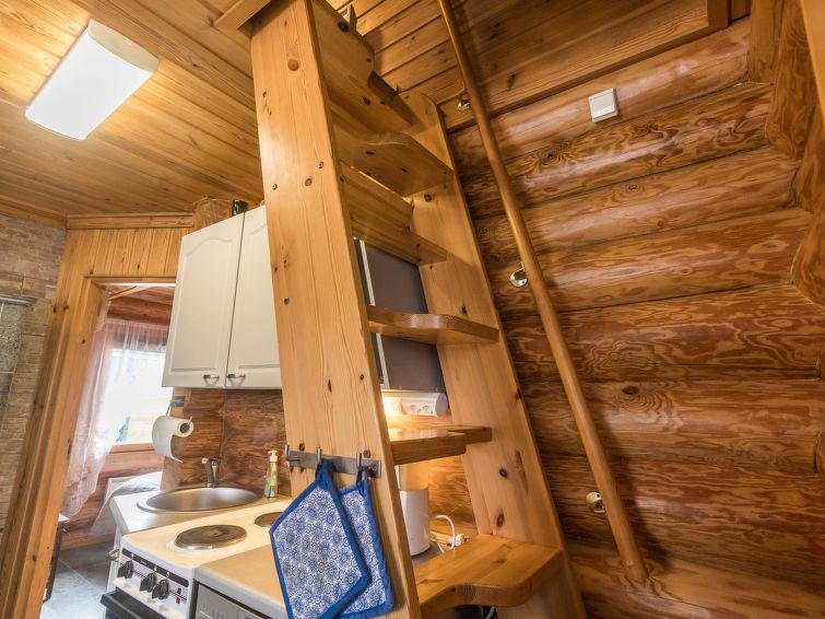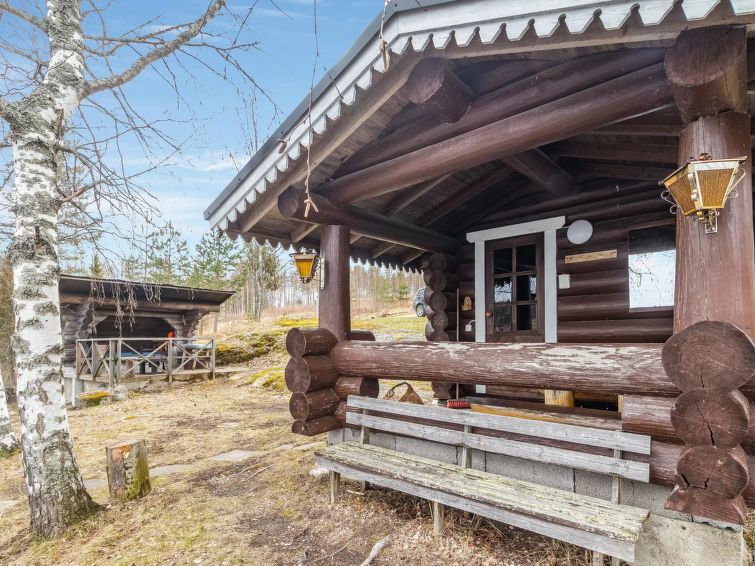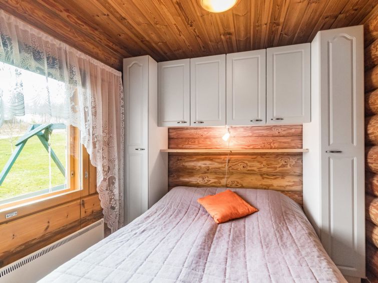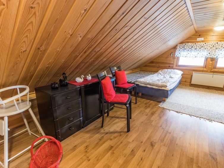 Log cottage 2011, living room/kitchen, bedroom double bed (140 cm wide). Upstairs 2 beds and baby’s travel bed, sauna (electric stove), washroom shower and WC, hall, terrace (25 m2).