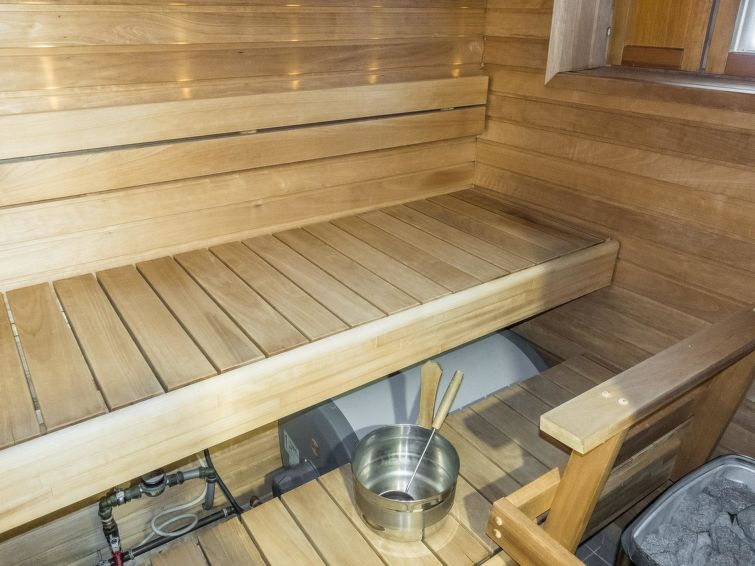 Inside the apartment, you'll be greeted by a cozy living room, which also features a sofa bed for additional sleeping arrangements if needed. The kitchenette provides an opportunity to prepare delicious meals, and the private sauna allows you to unwind after a day of activities.