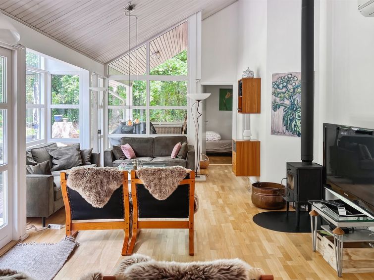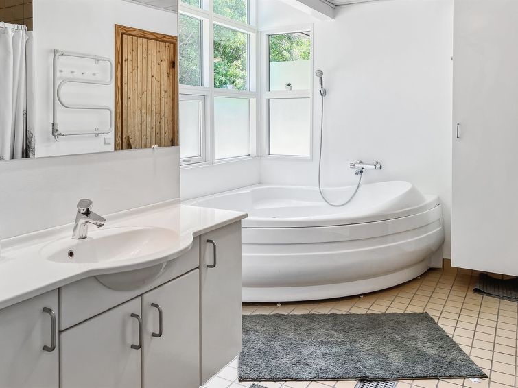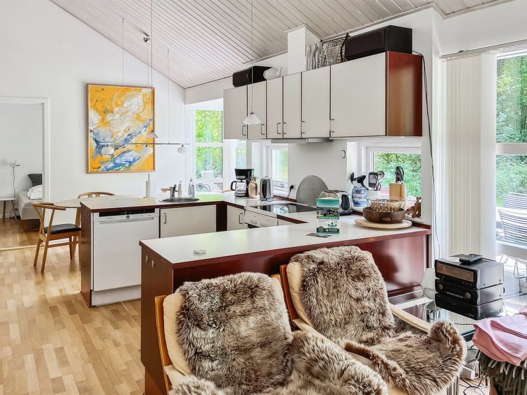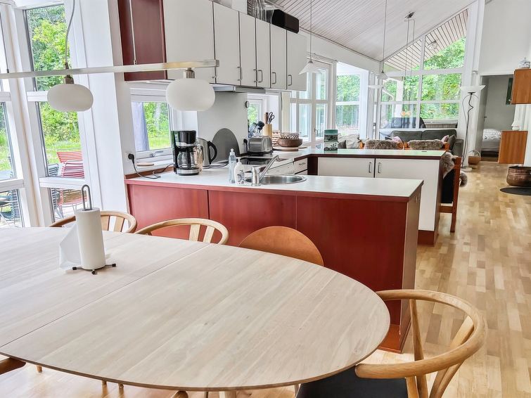 "Axel" - 1.2km from the sea in Bornholm", 4 rom hus 117 m2. Passer for 8 voksne. Stue med, TV, CD-spiller, stereoanlegg og DVD. 1 rom med, 2 sovesoffaer. 1 rom med, 2 sovesoffaer. 1 rom med, 2 sovesoffaer. Åpen galleri, 1 rom med 2 senger. Kjøkken (stekeovn, oppvaskmaskin, 4 keramiske kokeplater, mikrobølgeovn, frys). 2 dusjer/WC, boblebad. Terrasse 10 m2, dekt. Fasiliteter: høy barnestol barneseng (ekstra). Internett (trådløs LAN [WLAN]). Vennligst merk: røykfri bolig.