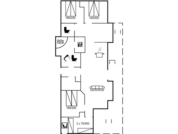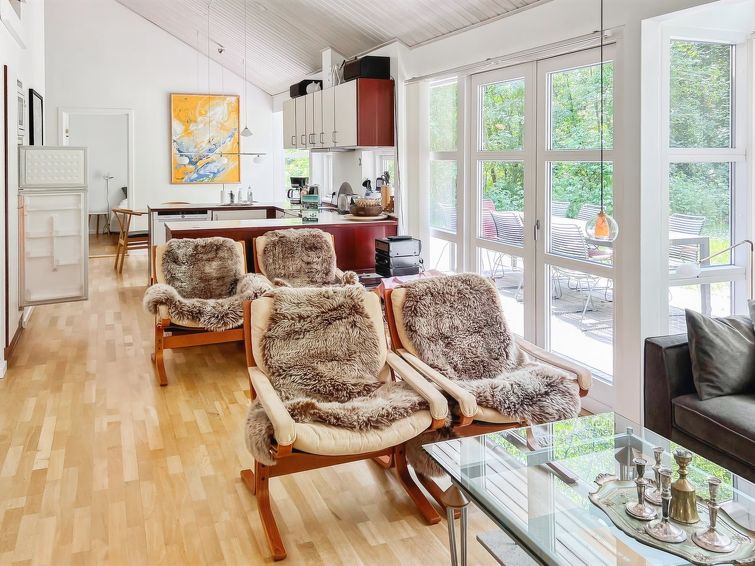 Enmannsbolig, bygget i 2005. 1.2 km fra sjøen. Privat: tomt 500 m2. Terrasse (30 m2). I huset: badstu, vaskemaskin, tørketrommel. Parkering ved hbrukt. Daglivarehandel 3 km. Golfbane 8 km. Eieren godtar ikke noen ungdomsgrupper.