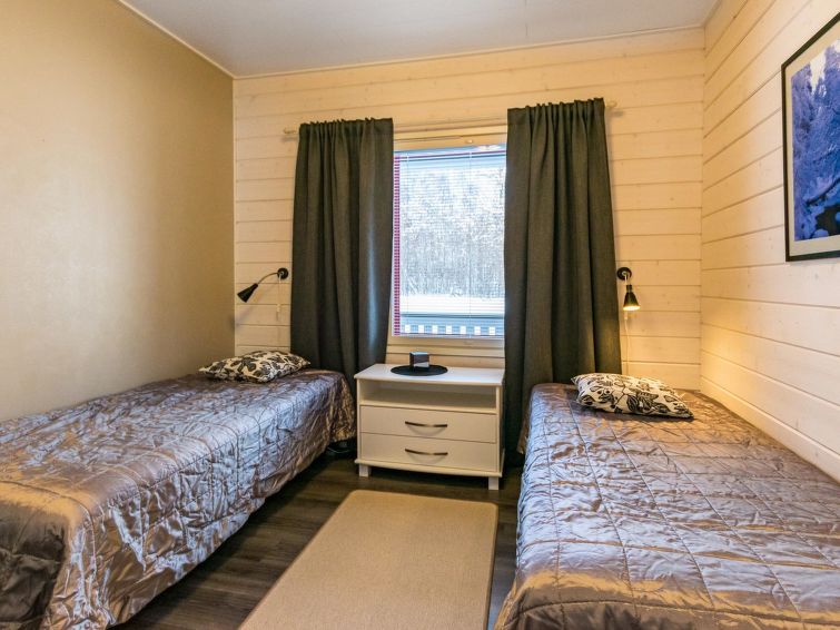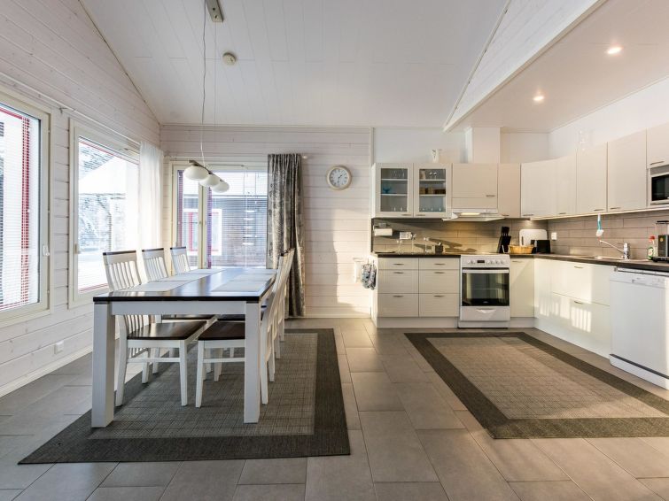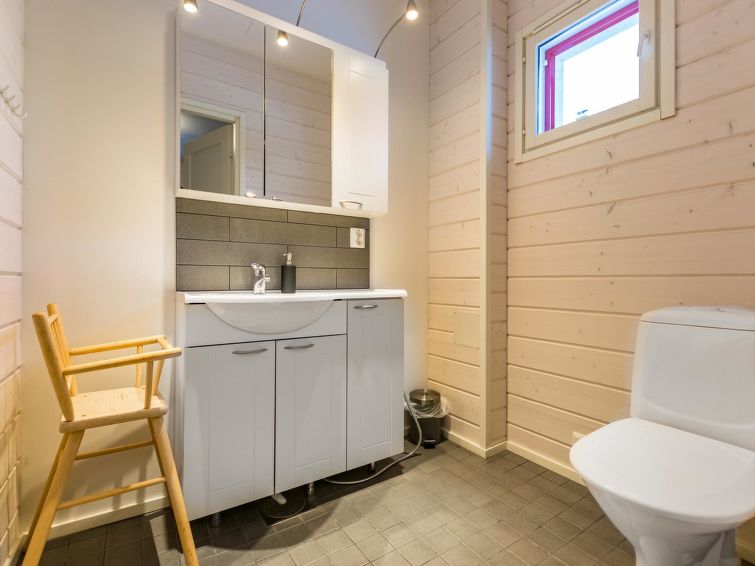 Wooden cottage, built in 2014, living room-kitchen, bedroom with two beds and toilet, another bedroom with 2 beds. Entrance hall where washing machine, dryer and electric drying cupboard.