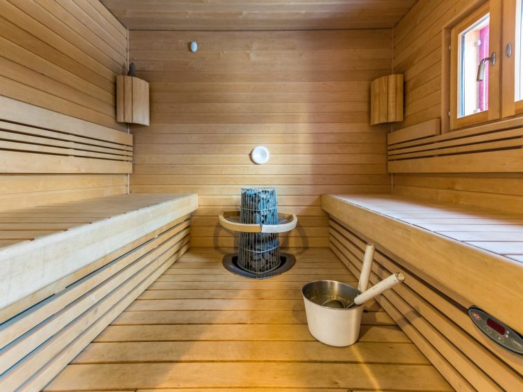 Electric sauna, washroom with 2 showers, underfloor heating in all areas, mechanical ventilation.