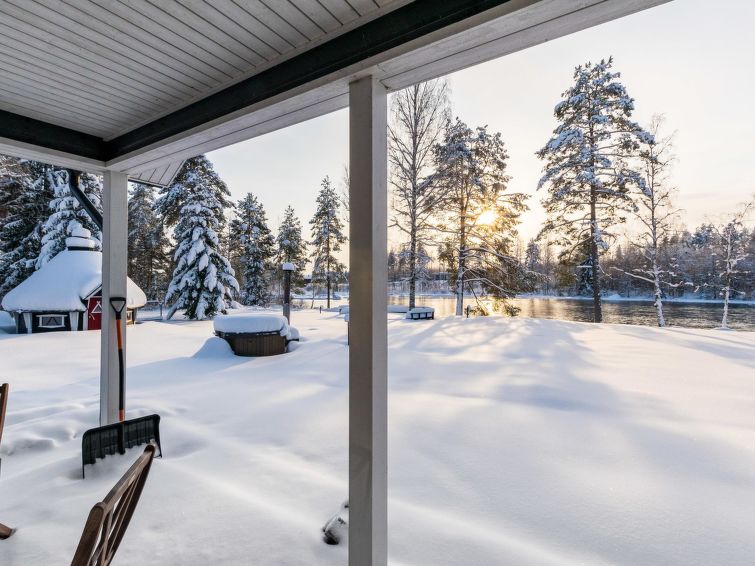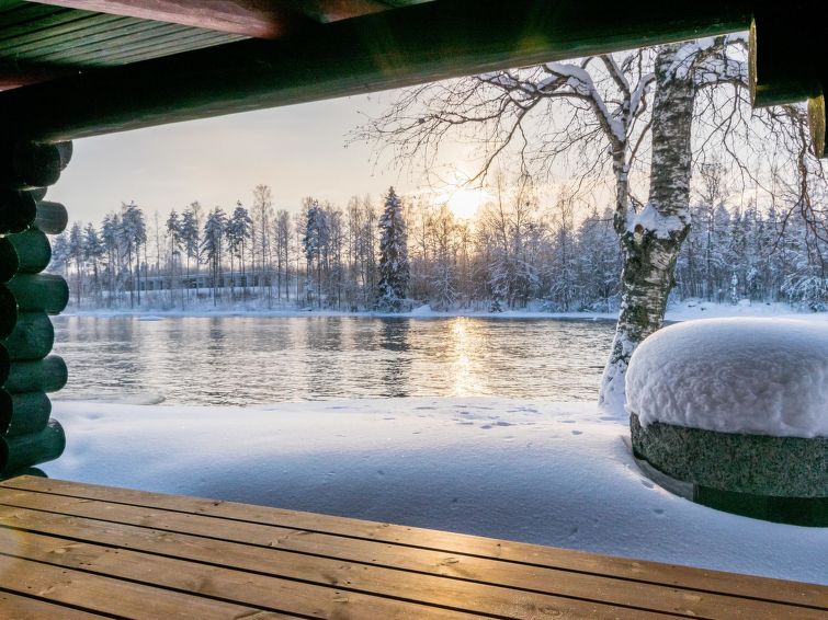 The cottage is fairly well suitable for moving disabled. Cottage is located on the eastern shore of Äyskoski, lawn yard is flat. Barbecue hut, lean-to, campfire site and lakeside sauna in shared use of three cottages. Owner rents out hot tub.