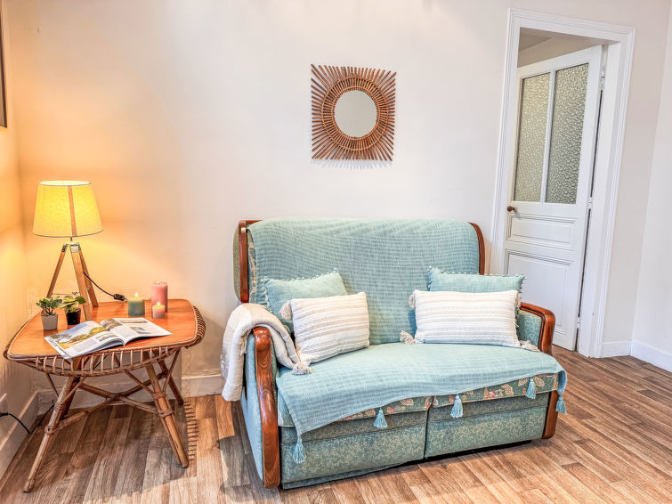 Rekkehus "Bel Air". Utmerkt område: midt i sentrum, men roligt, 650 m fra sjøen, 3.9 km fra stranden. Privat: velholdt hage m2 400 ha (inngjerdet) med planter og trær. Terrasse, hagemøbler, grill. I huset: sykkelrom. Privat garasje. Butikk, daglivarehandel 300 m, supermarked 1.6 km, bakeri, café 300 m, sandstrand "Plage Port Mer" 3.7 km, dykkesenter 15 km, utendørs svømmebasseng 15 km, termalbad "Les Thermes Marins de Saint Malo" 14.1 km. Sporthavn 2.1 km, golfbane 25 km, tennis 600 m, rideskole 1.8 km. Attraksjoner i nærheten: Les Parcs à Huitres 1.3 km, La Pointe du Grouin 4.5 km, Saint Malo Intra Muros 16 km, Le Grand Aquarium 18.5 km, Dinard 23 km, Le Mont Saint Michel 48 km. Vennligst merk: 1.etasje er avstengt og brukes ikke. Nøkkelleveringen skjer i Interhome i Cancale.