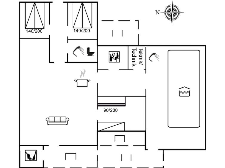 Enmannsbolig, bygget i 1981. 900 m fra sjøen. Privat: uberørt tomt 1'290 m2, innendørs pool (3 x 6 m, 18 m2, dybde 150- 150 cm dyp). Terrasse (20 m2). I huset: badstu, vaskemaskin. Parkering ved hbrukt. Daglivarehandel 1.1 km. Eieren godtar ikke noen ungdomsgrupper.