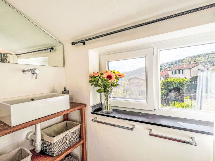 Koselig, rustikk hus "Bella Vista", 300 m.o.h. Med 2 etasjer, renovert i 2020. I området Bellissimi 4 km fra sentrum av Dolcedo, 13 km fra sentrum av Imperia, 37 km fra sentrum av San Remo, i en solrikt, høyt posisjon i et boligområde, område med lite trafikk, 3 km fra innsjø. I huset: takterrasse. 200 m bratt gangsti til hbrukt. Offentlig parkering 200 m. Butikk 5 km, supermarked 13 km, restaurant 5 km, bar 5 km, bakeri 5 km, café 5 km, bussholdeplass 200 m, togstasjon "Imperia Porto Maurizio" 13 km, småstenstrand "Imperia Porto Maurizio" 13 km, utendørs svømmebasseng 10 km, badevann "Lecchiore" 3 km. Marina 17 km, rideskole 6 km, sykkelvei 15 km.
