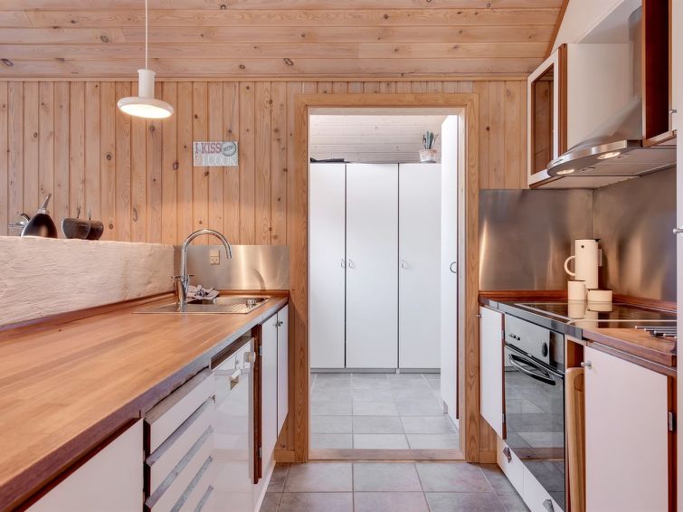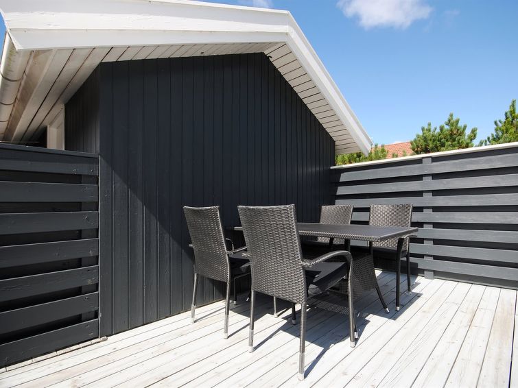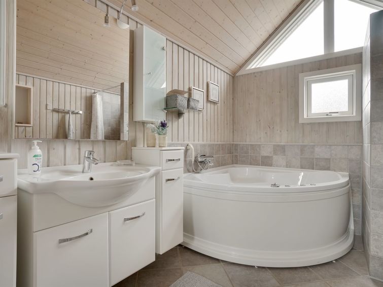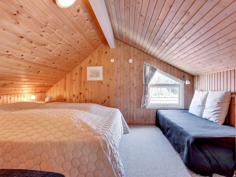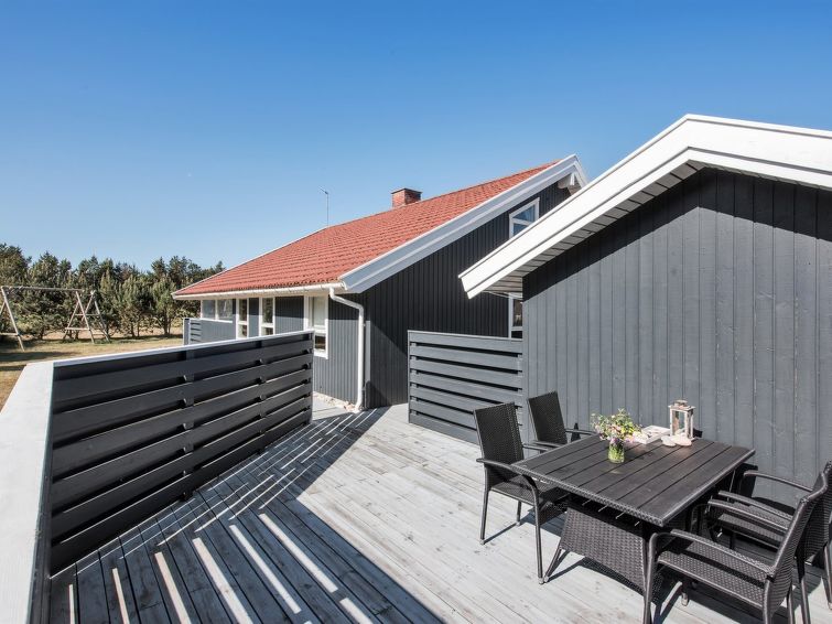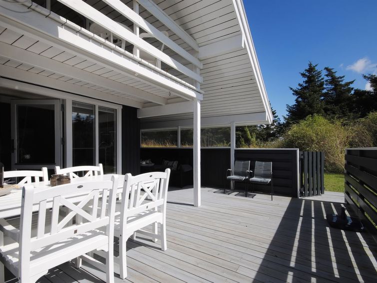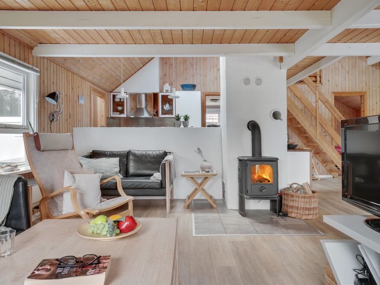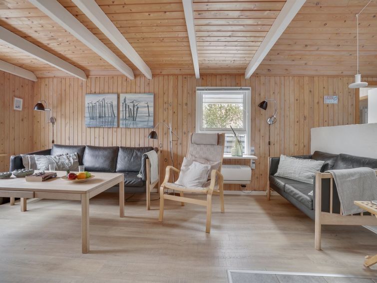 "Bente" - 800m from the sea in NW Jutland", 3 rom hus 115 m2. Passer for 8 voksne + 1 barn. Stue med, TV, stereoanlegg og DVD. 1 rom med, 1 dobbeltseng. 1 rom med, 1 dobbeltseng. 1 rom med, 1 dobbeltseng. Kjøkken (4 kokeplater, stekeovn, oppvaskmaskin, mikrobølgeovn, frys). Dusj/WC, boblebad. øverste etasje: 1 rom med, 1 dobbeltseng. Terrasse 20 m2, dekt. Fasiliteter: høy barnestol barneseng (ekstra). Internett (trådløs LAN [WLAN]). Max kjæledyr / hund tillatt 1 kjæledyr / hund tillatt.