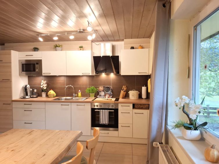"Bergfried (FUC150)", 9 rom hus 250 m2 på 3 etasjer. Lys: stue/soverom med, 2 sovesoffaer, vedovn, spisebord og kabel-TV. Utgang til terrassen. Stue/soverom med skråtak med, 1 dobbeltseng (160 cm). Åpent kjøkken (stekeovn, oppvaskmaskin, 4 keramiske kokeplater, brødrister, mikrobølgeovn, elektrisk kaffemaskin, raclettegrill (ost)). Dusj, sep. WC. Oppvarming. øverste etasje: 1 rom med, 1 dobbeltseng (140 cm). Utgang til balkongen. 1 rom med, 1 dobbeltseng (140 cm), vaskeservant. Utgang til balkongen. 1 rom med 1 seng, 1 dobbeltseng og vaskeservant. Utgang til balkongen. 1 rom med 1 seng, 1 dobbeltseng og vaskeservant. Utgang til balkongen. Dusj, sep. WC. Oppvarming. øverste etasje: stue/soverom med skråtak med, 1 dobbeltseng (160 cm), vaskeservant og kabel-TV. 2 rom med skråtak, hvert rom med 1 seng, 1 dobbeltseng og vaskeservant. Åpent kjøkken (4 keramiske kokeplater, brødrister, elektrisk kaffemaskin). Dusj/WC. Oppvarming. Hage 900 m2. Fasiliteter: Internett (trådløs LAN [WLAN], gratis). Vennligst merk: røykfri bolig. Kjæledyr / hund tillatt 1 kjæledyr / hund tillatt. Dersom utleieobjektet blir bestilt for færre personer enn det som er maksimalt tillatt, vil ikke alle enhetene stå til rådighet. 50604-003152-2020