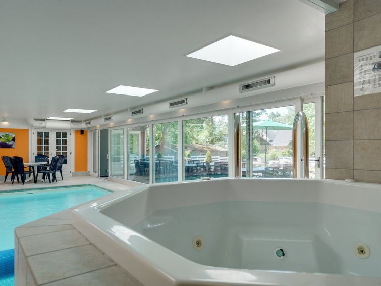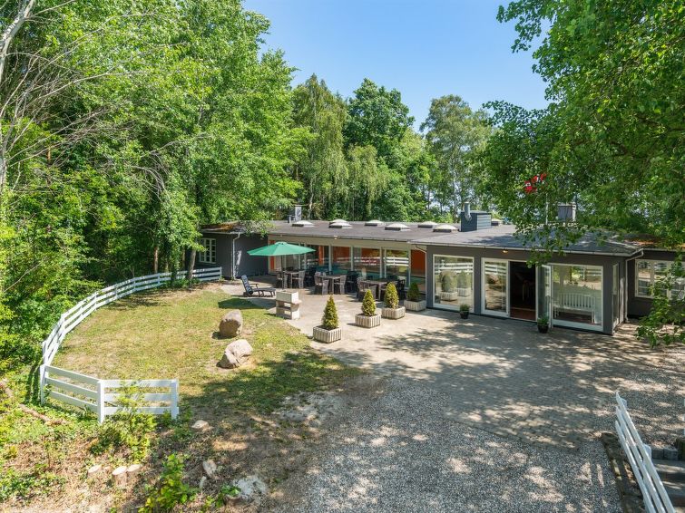 Enmannsbolig, bygget i 1954. 50 m fra sjøen. Privat: uberørt tomt 3'172 m2, innendørs pool (4 x 7 m, 2'8.8 m2, dybde 130- 130 cm dyp). Terrasse (100 m2), grill, lekeplass (rutsjebane, huske). I huset: badstu, vaskemaskin, tørketrommel. Parkering ved hbrukt. Daglivarehandel 700 m. Golfbane 1.5 km. Eieren godtar ikke noen ungdomsgrupper.