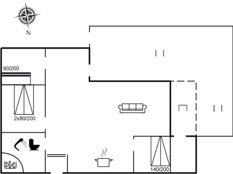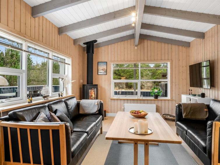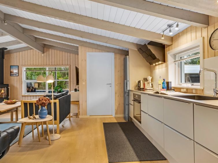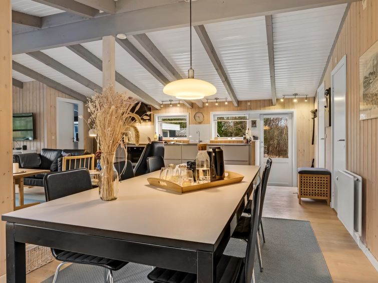 "Bia" - 250m from the sea in NE Jutland", 3 rom hus 83 m2. Passer for 6 voksne + 1 barn. Stue med, TV og radio. 1 rom med, 1 dobbeltseng. 1 rom med, 1 dobbeltseng. 1 rom med, 1 x 2 køysenger. Kjøkken (stekeovn, oppvaskmaskin, 4 induksjonskomfyr, frys). Dusj/WC, boblebad. Terrasse 8 m2, dekt. Fasiliteter: høy barnestol barneseng (ekstra). Internett (trådløs LAN [WLAN]). Vennligst merk: røykfri bolig.