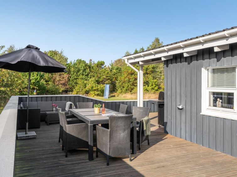 Enmannsbolig, bygget i 1959. 250 m fra sjøen. Privat: uberørt tomt 2'714 m2. Utendørs dusj, terrasse (75 m2), grill, lekeplass (rutsjebane, huske). I huset: vaskemaskin, tørketrommel. Parkering ved hbrukt. El-ladestasjon. Daglivarehandel 8 km. Eieren godtar ikke noen ungdomsgrupper.