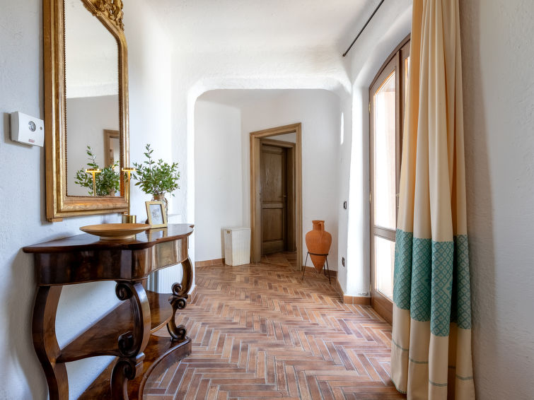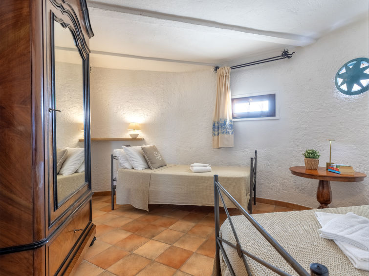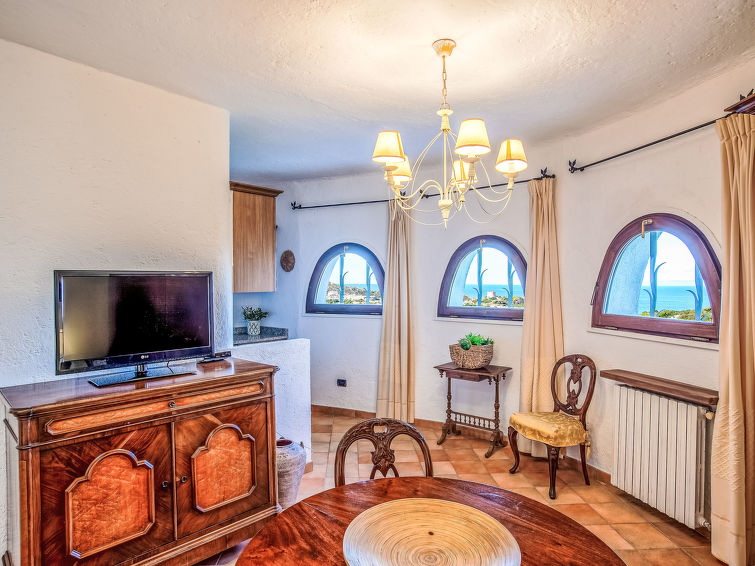 7 rom hus 200 m2. Romlig, komfortabelt og stilfullt møbler: stor stue med, spisebord og satelit-TV. Utgang til verandraen. 1 dobblet rom med, dusj/bidèt/WC, air-conditioning og varmluft oppvarming. Utgang til terrassen. 1 rom med 2 senger, air-conditioning og varmluft oppvarming. Utgang til terrassen. 1 rom med 2 senger, air-conditioning og varmluft oppvarming. Kjøkken (stekeovn, oppvaskmaskin, 5 gassbrennere, mikrobølgeovn, frys, elektrisk kaffemaskin). Utgang til terrassen. Dusj/bidé/WC, sep. WC. øverste etasje: stue med, spisebord. 1 dobblet rom. 1 rom med 2 senger. Lite, åpent kjøkken (stekeovn, 4 gassbrennere). Dusj/bidé/WC. Airconditioning, varmluftsoppvarming. Oppvarming er ikke tilgjengelig på alle rom. 2 store terrasser. Terrassemøbler, liggestoler (5). Hærlig panoramautsikt av havet, landskapet, viken og byen. Fasiliteter: høy barnestol barneseng (ekstra). Ingen innvendige tilkoblingsdører mellom separate boliger.