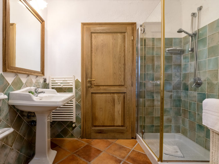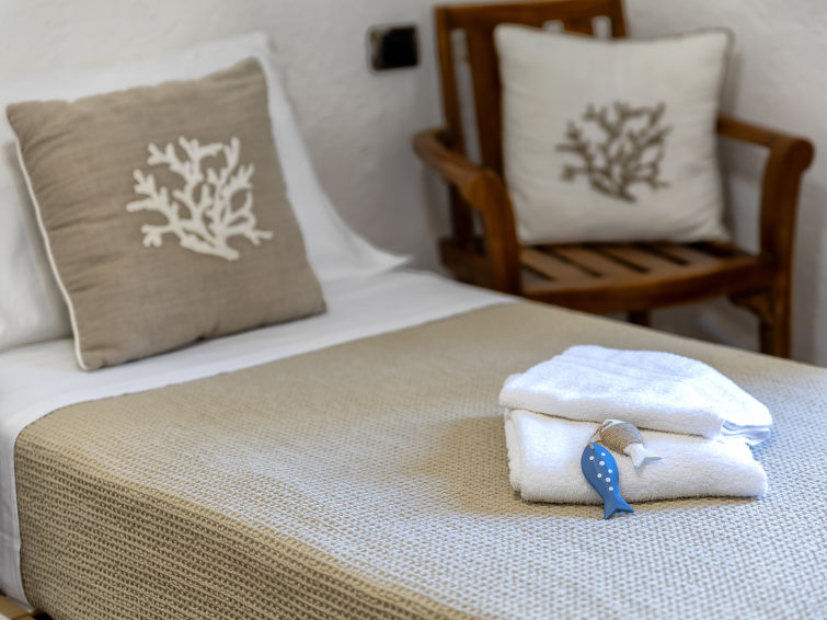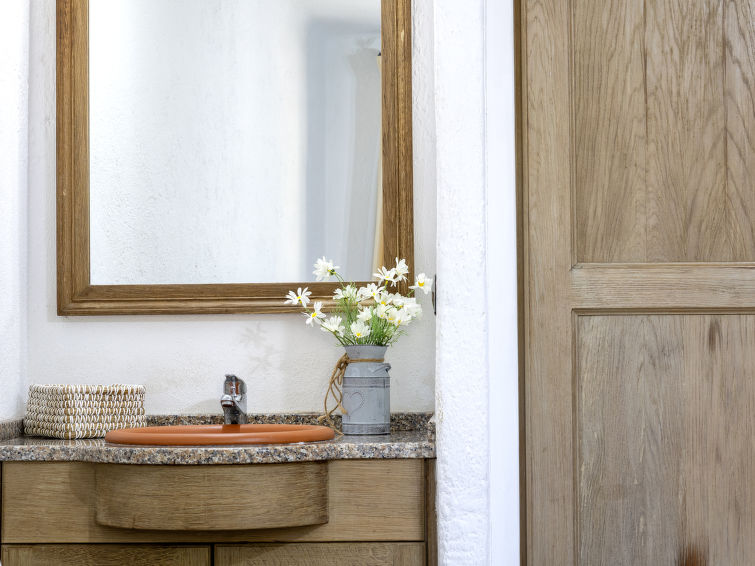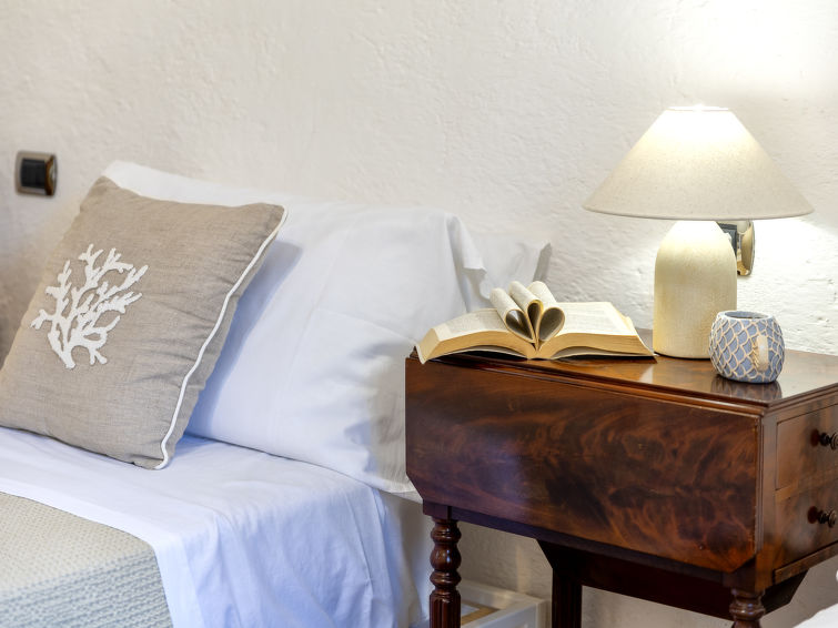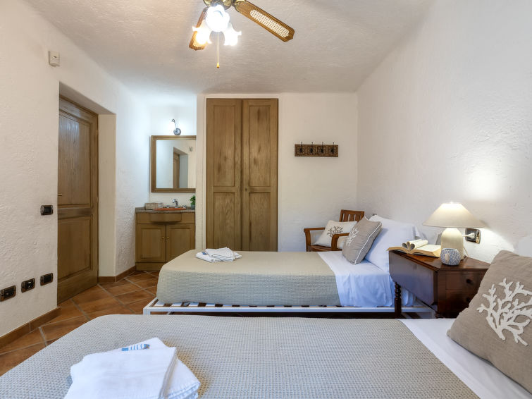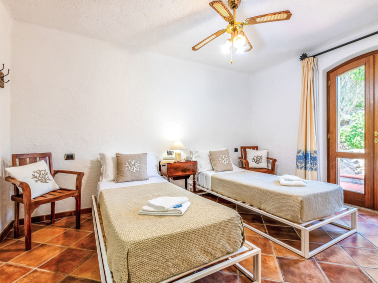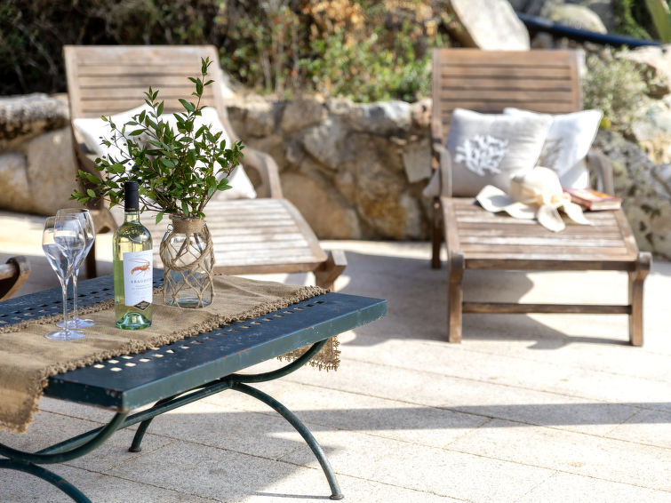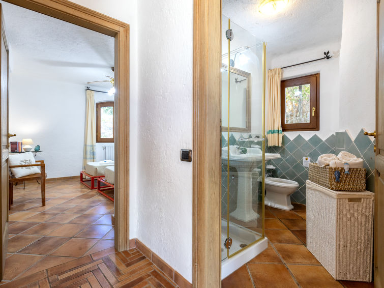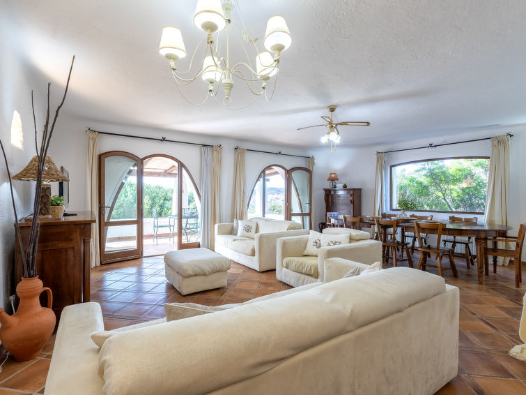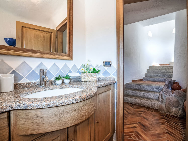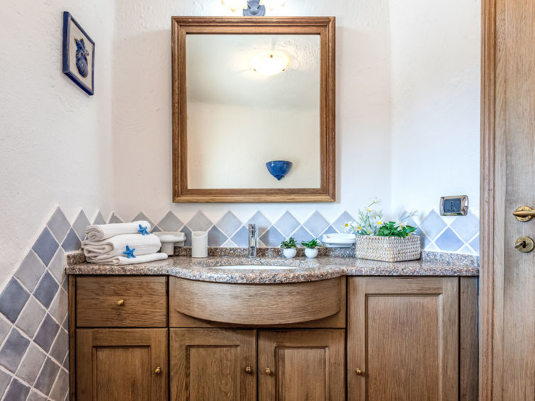 Fin villa "Bianca", frittstående. Eiendom bestående av hovedhus og uthus, i området Terravecchia 2 km fra sentrum av Santa Teresa, 24.5 km fra sentrum av Palau, 61 km fra sentrum av Olbia, i en solrikt, høyt posisjon på toppen av en høyde, 1.5 km fra sjøen, i det grønne. Privat: stor hage i flere nivåer m2 5'000 ha (uten gjerde) med planter og trær, svømmebasseng nyre-formet (10 x 4 m, dybde 130- 200 cm dyp, Sesongåpent: 01.Apr. - 31.Okt.). Utendørs dusj, boblebad, pergola, terrasse, hagemøbler, grill. I huset: vaskemaskin. 40 m lang ujevn Tilgang med bil hele veien til hbrukt (naturvei). Trapper til hbrukt. Parkering på tomten. Supermarked 2 km, restaurant 1.5 km, ferje "Olbia" 68 km, sandstrand "Rena Bianca" 4 km, badebukt 1.5 km. Marina 1.5 km. Vennligst merk: bil anbefales.