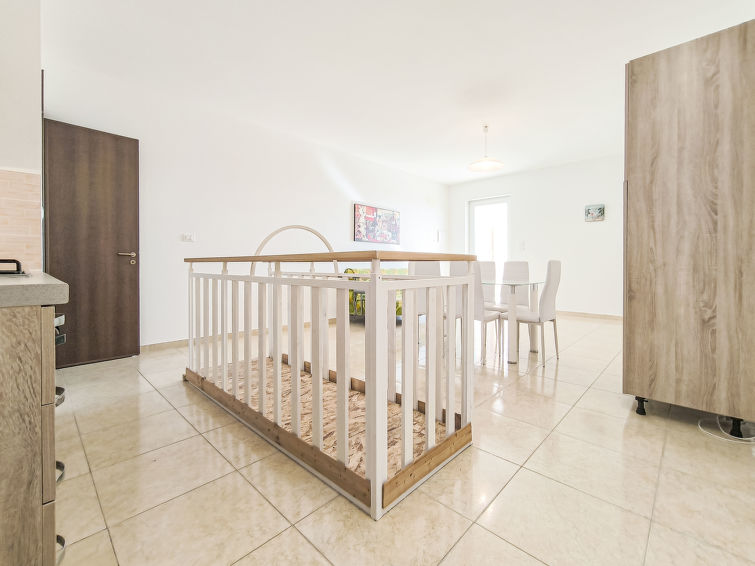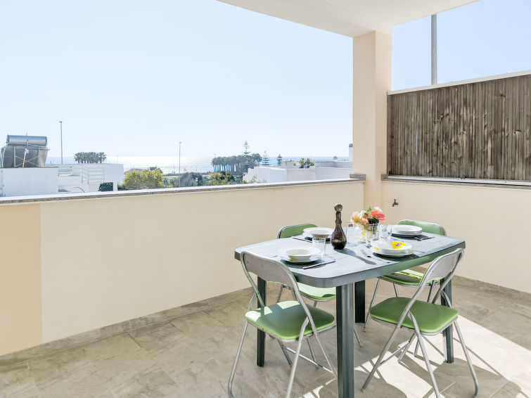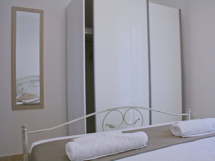 Fin, komfortabel tremannsbolig rekkehus. I en solrikt posisjon, 200 m fra sjøen, 300 m fra stranden. Privat: utendørs dusj. I huset: vaskemaskin (for felles bruk). Offentlig parkering på veien. Daglivarehandel, supermarked, restaurant 100 m, område bare for gående 200 m, sandstrand 600 m småstenstrand 300 m. Attraksjoner i nærheten: Lecce 80 km, Porto Cesaro 70 km, Torre San Giovanni 18 km, Otranto 57 km, Santa Maria di Leuca 12 km, Gallipoli 43 km. Vennligst merk: ingen heis.