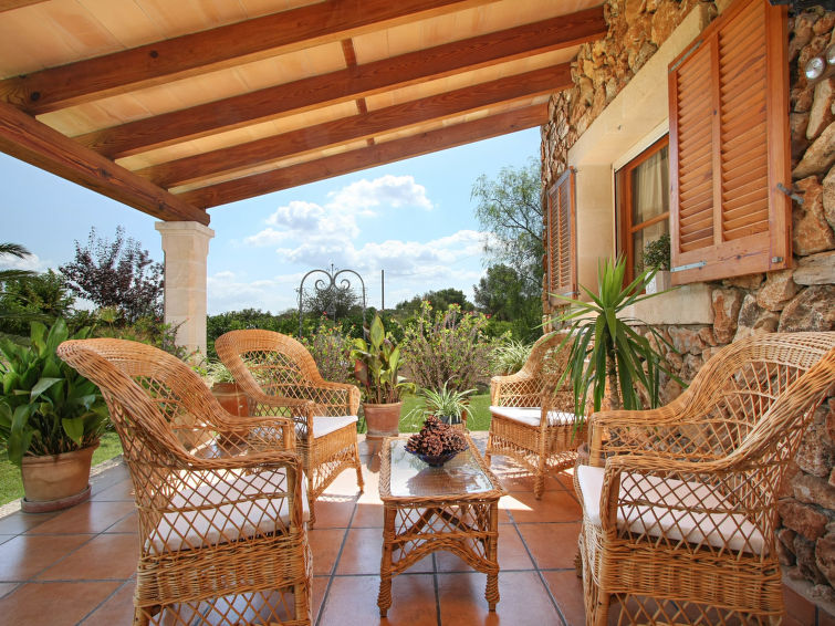 "Binibona", 3 rom hus 130 m2, bunnetasje. Passer for 4 voksne. Lys, fullstendig renovert, meget komfortabelt og romantiskt møbler: stor stue/spisestue med panoramavindu med, spisebord, TV og satelit-TV (flatskjerms TV), radio, stereoanlegg, elektrisk oppvarming, air-conditioning og varmluft oppvarming. Utgang til sitteplass i hagen. 1 stort dobblet rom med panoramavindu med, 1 dobbeltseng (150 cm, lengde 200 cm), elektrisk oppvarming og vifte. 1 dobblet rom med panoramavindu med 2 senger (90 cm lengde 200 cm), elektrisk oppvarming og vifte. Kjøkken/stue (4 kokeplater, stekeovn, mikrobølgeovn, frys, elektrisk kaffemaskin) med spisebord. Utgang til sitteplass i hagen. Bad/WC. El-oppvarming. Stor sitteplass i hagen, plen, lysthus. Terrassemøbler, grill, liggestoler (4), overbygd balkong. Hærlig panoramautsikt av fjellene og landskapet. Fasiliteter: vaskemaskin, strykejern, høy barnestol barneseng, hårføner. Internett (trådløs LAN [WLAN], gratis). Parkeringsplass (inngjerdet). Velegnet for familier. ETV43