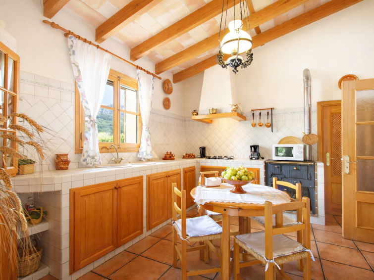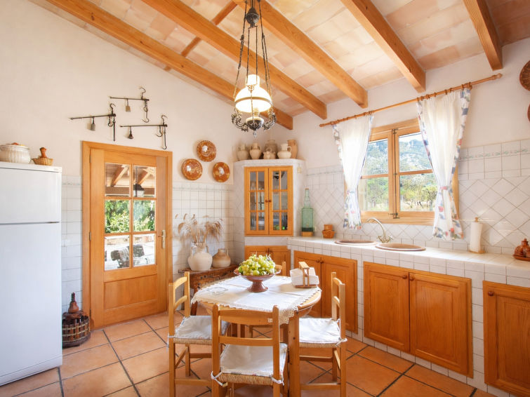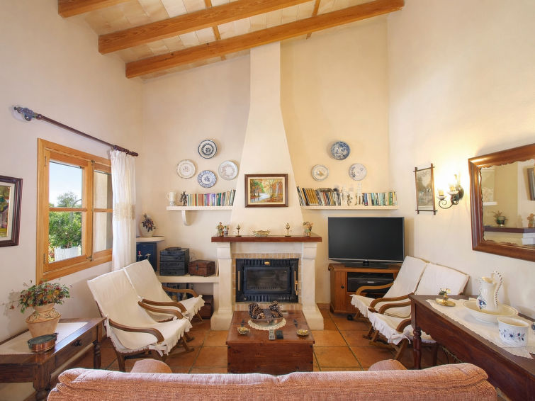 "Binibona", 3 rom hus 130 m2, bunnetasje. Passer for 4 voksne. Lys, fullstendig renovert, meget komfortabelt og romantiskt møbler: stor stue/spisestue med panoramavindu med, spisebord, TV og satelit-TV (flatskjerms TV), radio, stereoanlegg, elektrisk oppvarming, air-conditioning og varmluft oppvarming. Utgang til sitteplass i hagen. 1 stort dobblet rom med panoramavindu med, 1 dobbeltseng (150 cm, lengde 200 cm), elektrisk oppvarming og vifte. 1 dobblet rom med panoramavindu med 2 senger (90 cm lengde 200 cm), elektrisk oppvarming og vifte. Kjøkken/stue (4 kokeplater, stekeovn, mikrobølgeovn, frys, elektrisk kaffemaskin) med spisebord. Utgang til sitteplass i hagen. Bad/WC. El-oppvarming. Stor sitteplass i hagen, plen, lysthus. Terrassemøbler, grill, liggestoler (4), overbygd balkong. Hærlig panoramautsikt av fjellene og landskapet. Fasiliteter: vaskemaskin, strykejern, høy barnestol barneseng, hårføner. Internett (trådløs LAN [WLAN], gratis). Parkeringsplass (inngjerdet). Velegnet for familier. ETV43