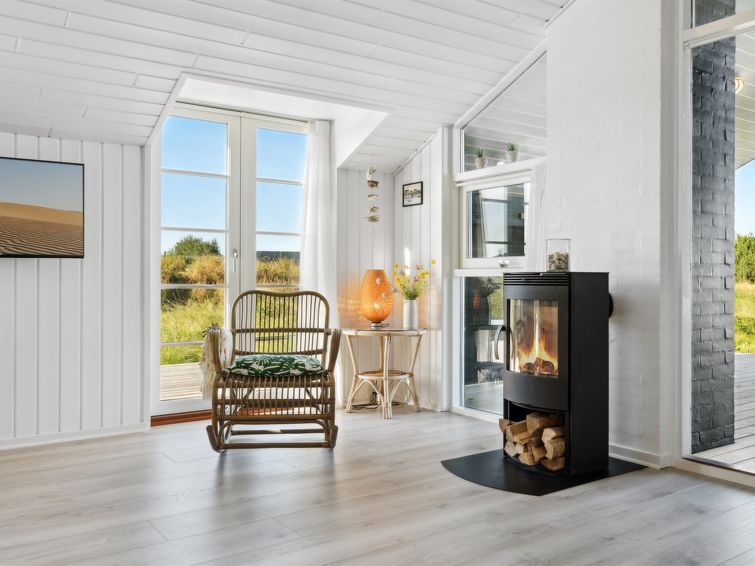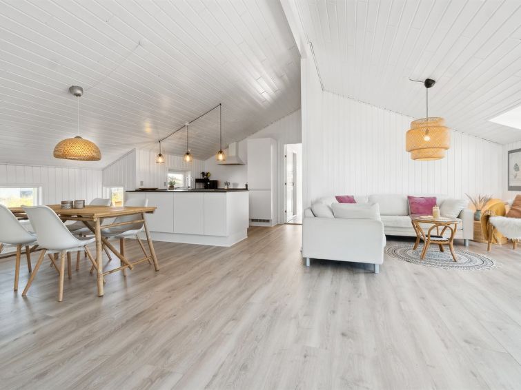 "Blaguna" - 600m from the sea in NW Jutland", 3 rom hus 114 m2. Passer for 6 voksne. Stue med, TV. 1 rom med, 1 dobbeltseng. 1 rom med, 1 dobbeltseng. 1 rom med, 1 dobbel sovesoffa. Kjøkken (stekeovn, oppvaskmaskin, 4 keramiske kokeplater, frys). Dusj/WC. Fasiliteter: Internett (trådløs LAN [WLAN]). Vennligst merk: røykfri bolig.