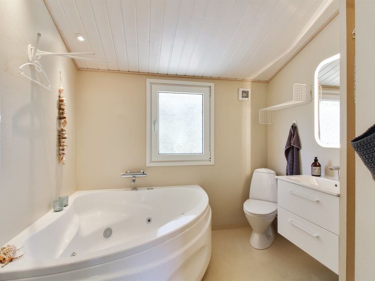 Enmannsbolig, bygget i 1977. 575 m fra sjøen. Privat: uberørt tomt 950 m2. Utendørs dusj, terrasse (50 m2), grill. I huset: badstu, vaskemaskin, tørketrommel. Parkering ved hbrukt. Daglivarehandel 3.8 km. Golfbane 5.0 km. Eieren godtar ikke noen ungdomsgrupper.