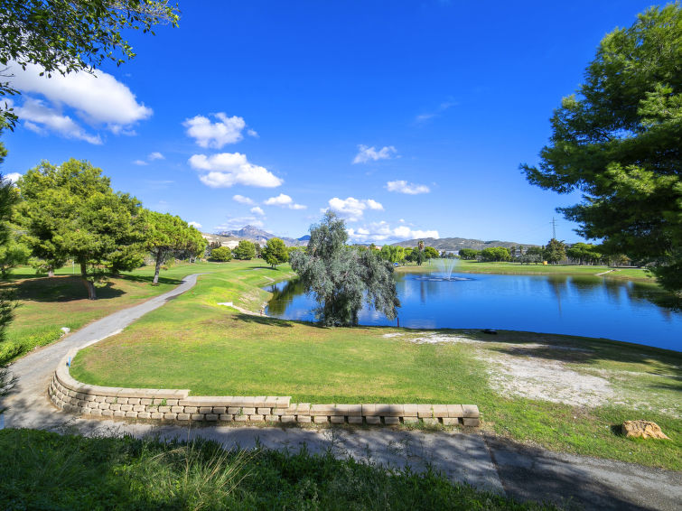 Campo de Golf Bonalba: Stor, moderne, komfortabel resort "Bonalba Golf, Urb Los Naranjos", med 2 etasjer. I utkanten, 5 km fra sentrum av San Juan-Campello, i distriktet Bonalba Golf, i en roligt, solrikt posisjon, 5 km fra sjøen, 5 km fra stranden, på golfbanen. Fellesbruk: tomt (inngjerdet), stor hage med plen 35 m2, 1 badebasseng (4 x 7 m, dybde 110- 190 cm dyp, Sesongåpent: 01.Jun. og 30.Sep.). Tennis (ekstra). Privat: vakker hage m2 450 ha (inngjerdet), svømmebasseng (Sesongåpent: 01.Jan. - 31.Des.). Utendørs dusj, sitteplass, pergola, hagemøbler, grill. I anlegget: restaurant, bar, trådløst LAN [WLAN], spaområde (alt ekstra), butikkpingmuligheter. Parkering ved hbrukt. Butikk, daglivarehandel, restaurant, bussholdeplass 300 m, togstasjon "Alicante" 10 km, sandstrand "San Juan/El Campello" 5 km. Sporthavn 10 km, golfbane(18 hull), tennis 100 m. Attraksjoner i nærheten: Terra Mitica 38 km, Terra Natura 38 km, Aqualandia 38 km, Alicante 19 km, Benidorm Palace 38 km, Aeropuerto de Alicante 30 km. Vennligst merk: bil anbefales. Området har vakthold om natten. Det er flere lignende leiligheter i samme hus. Objektnummer ES9749.303.1 ligger på samme tomt.
