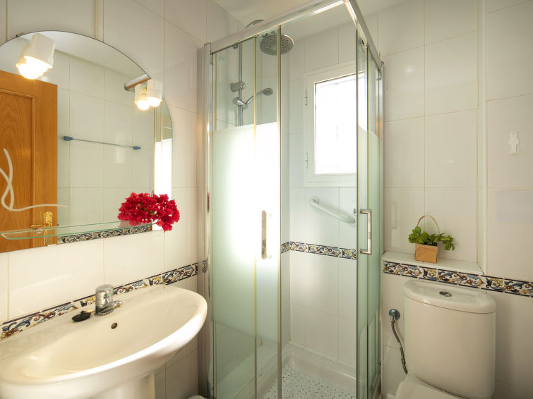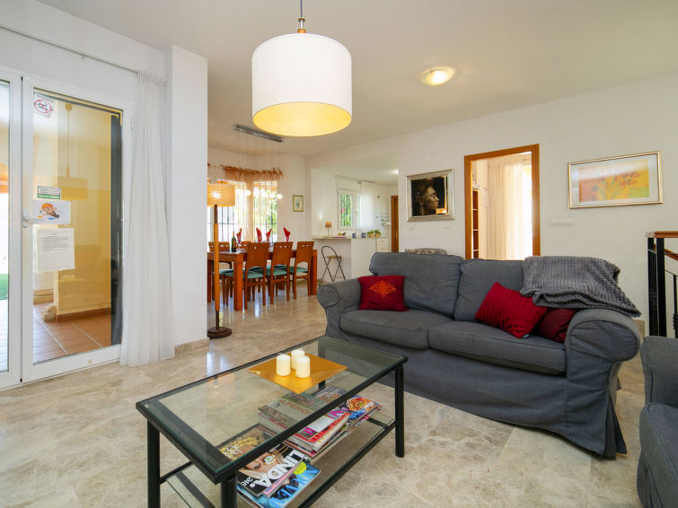 "Bonalba Golf, Urb. Los Naranjos", 4 rom hus 168 m2 på 2 etasjer. Romlig og lys, meget komfortabelt og smakfullt møbler: stue/spisestue 31 m2 med, åpen peis, digital TV, DVD, elektrisk oppvarming, gassoppvarming, air-conditioning og varmluft oppvarming. Utgang til sitteplass i hagen, til badebassenget. Åpent kjøkken 10 m2 (4 kokeplater, oppvaskmaskin, brødrister, vannkoker, mikrobølgeovn, frys, elektrisk kaffemaskin). Utgang til sitteplass i hagen, til badebassenget. Dusj/WC. Vannkoker (50 liter). I underetasje: 1 rom 9 m2 med 2 senger (90 cm lengde 200 cm), dusj/WC. 2 rom 8 m2, hvert rom med 2 senger (90 cm lengde 190 cm). Dusj. El-oppvarming. Balkong 6 m2, stor sitteplass i hagen 30 m2, stor sitteplass i hagen 120 m2, hage, plen 34 m2. Terrassemøbler, liggestoler (6). Utsikt av hagen, landskapet og Golfbane. Fasiliteter: vaskemaskin, safe, strykejern, hårføner. Internett (trådløs LAN [WLAN], gratis). Parkeringsplass. Max kjæledyr/små hunder tillatt 2 kjæledyr/små hunder tillatt. AT439801A