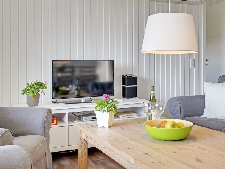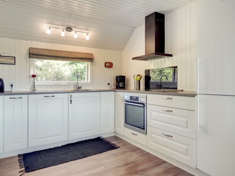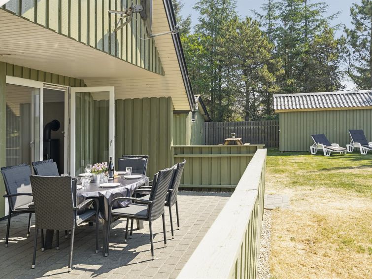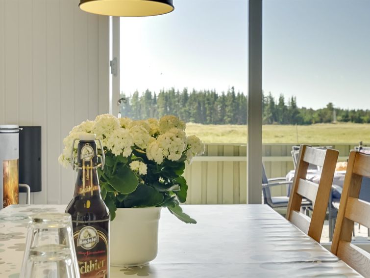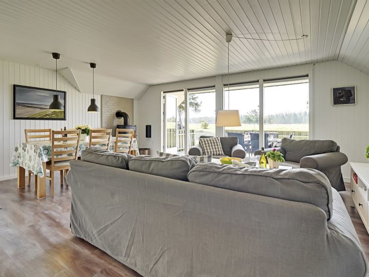 "Brunon" - 1.5km from the sea in Western Jutland", 3 rom hus 79 m2. Passer for 6 voksne. Stue med, TV. 1 rom med, 1 dobbeltseng. 1 rom med, 1 dobbeltseng. 1 rom med, 2 sovesoffaer. Kjøkken (stekeovn, oppvaskmaskin, 4 keramiske kokeplater, frys). Dusj/WC. Terrasse 16 m2, dekt. Fasiliteter: Internett (trådløs LAN [WLAN]). Vennligst merk: røykfri bolig. Max kjæledyr / hund tillatt 1 kjæledyr / hund tillatt.