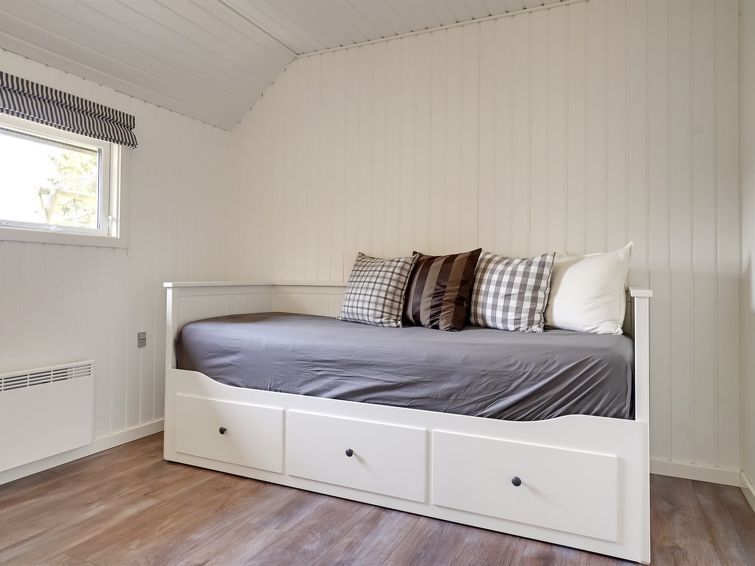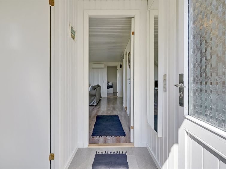 Enmannsbolig, bygget i 1980. 1.5 km fra sjøen. Privat: uberørt tomt 2'000 m2. Terrasse (25 m2), lekeplass (huske). I huset: vaskemaskin. Parkering ved hbrukt. Bilporten. Daglivarehandel 750 m. Eieren godtar ikke noen ungdomsgrupper.