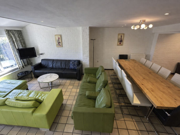 "Geschakelde 12 persoons", 7 rom hus 120 m2 på 2 etasjer. Praktiskt møbler: inngang. Stue/spisestue med, spisebord og TV. Utgang til terrassen. 3 dobbelt rom, hvert rom med 2 senger. Åpent kjøkken (4 kokeplater, oppvaskmaskin, vannkoker, elektrisk kaffemaskin, kombinert mikrobølgeovn). Dusj/WC. Oppvarming. øverste etasje: 3 dobbelt rom, hvert rom med 2 senger. Dusj, sittebadekar, sep. WC. Terrasse. Terrassemøbler. Fasiliteter: Internett (trådløs LAN [WLAN], gratis). Vennligst merk: max kjæledyr/små hunder tillatt 2 kjæledyr/små hunder tillatt. Røykvarsler.