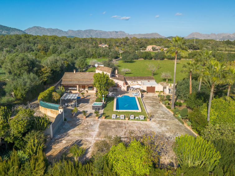 4 km fra Alcúdia: Rustikk, komfortabel gårdshus "Ca Na Guerrera", med 2 etasjer, renovert i 2018, omgitt av trær og jorder. Utenfor området, 4 km fra sentrum av Alcudia, i en roligt, solrikt posisjon, 7 km fra sjøen, ligger ved en mindre vei. Privat: tomt 13'000 m2 (inngjerdet) med plen og planter, frukthage (inngjerdet), vakker hage for avslappning, svømmebasseng kantete (9 x 4 m, Sesongåpent: 20.Mar. - 07.Nov.). Dusj/WC ved bassenget, utendørs dusj, boblebad, sitteplass (500 m2), pergola (15 m2), hagemøbler, grill (huske). I huset: internetilkobbling, trådløst LAN [WLAN], airconditioning, vaskemaskin. Smal Tilgang med bil hele veien. Parkering ved hbrukt på tomten. Butikk 6 km, daglivarehandel 6 km, restaurant 6 km, bussholdeplass "Alcudia" 6 km, togstasjon 10 km, sandstrand "Bahia de Alcudia" 7 km småstenstrand 8 km, strand ved klipper 8 km. Sporthavn 6 km, marina 6 km, golfbane(18 hull) 6 km, tennis 8 km, rideskole 5 km. Vennligst merk: bil anbefales. Velegnet for barnefamilier, passer for eldre. Passer for 7 voksne grupper med tenåringer- bare ved forespørsel. Av- og pålastning av bagasje er mulig ved feriebol. Behind the house there is an enclosed area with direct access from the garden, 5 ponies.