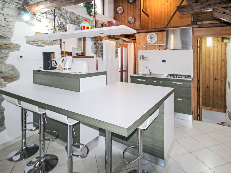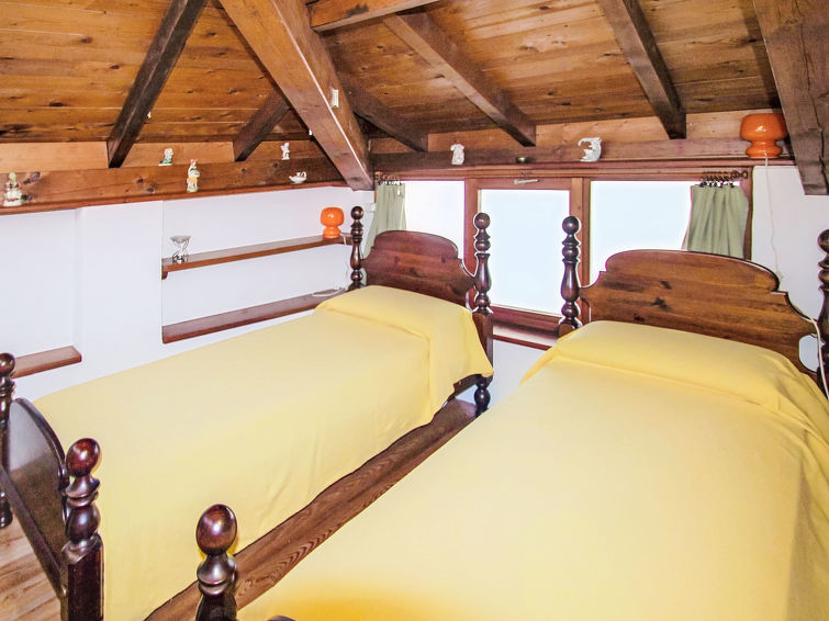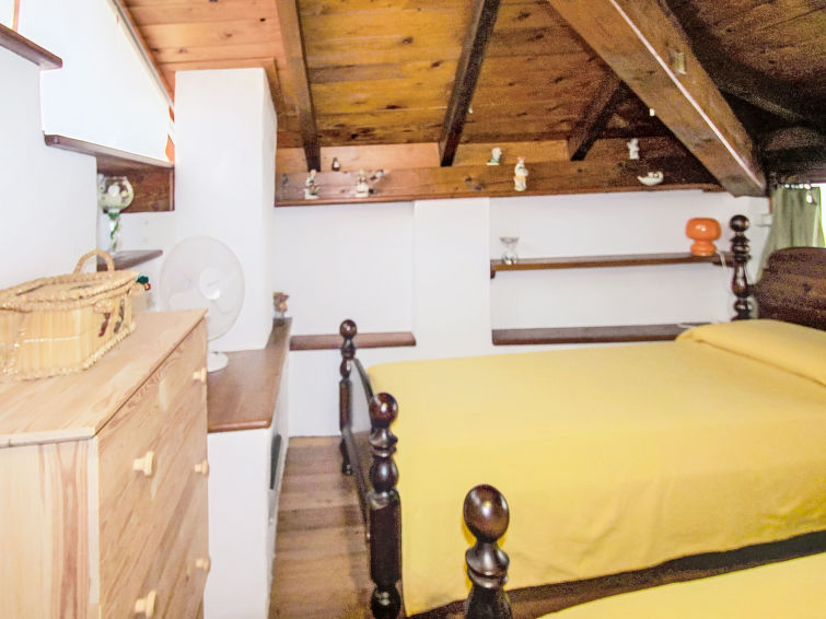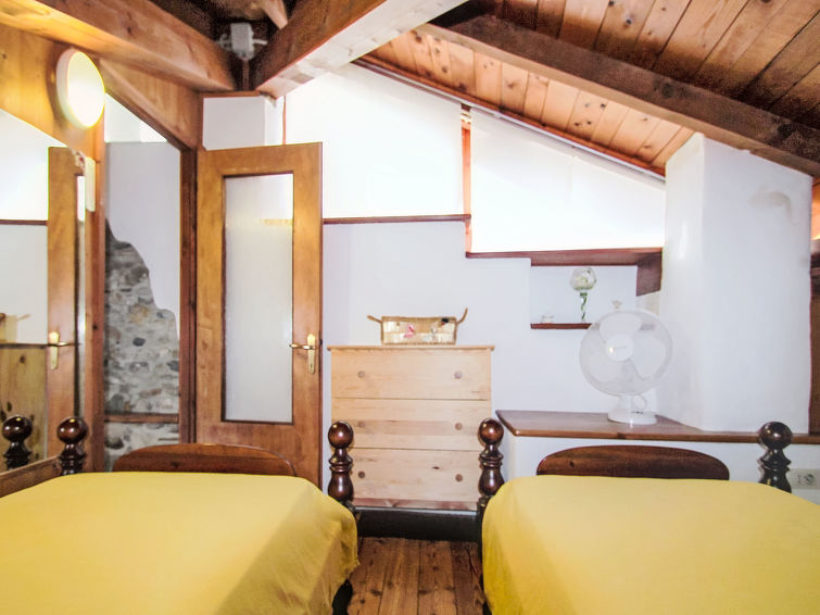 3 rom halvpart av tomannsbolig 45 m2 på 2 etasjer. Lys, rustikt og træ møblement møbler: øverste etasje: stue med, åpen peis, satelit-TV og vifte. Kjøkkenkrok (4 kokeplater, stekeovn, vannkoker, frys, elektrisk kaffemaskin). Dusj/bidé/WC. Gassoppvarming (ekstra). Oppvarming kun tilgjengelig fra 15.10. til 15.04. øverste etasje: (bratt trapp), 1 dobblet rom med skråtak med, vifte. 1 rom med skråtak med 2 senger. Tregulv. Fasiliteter: vaskemaskin, hårføner. Parkeringsplass i 5 m. Vennligst merk: ikke egnet for små barn. Røykfri bolig, parkeringsplass bare for små biler. CIR:012045-CNI-00005