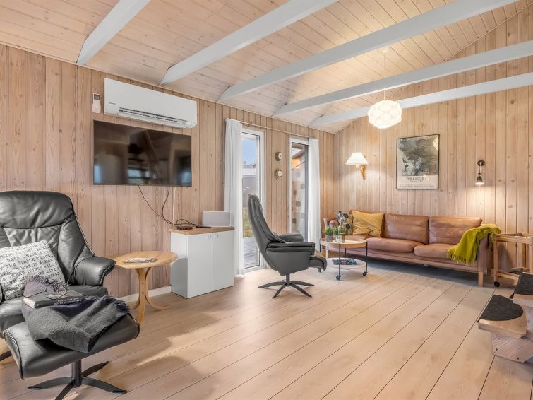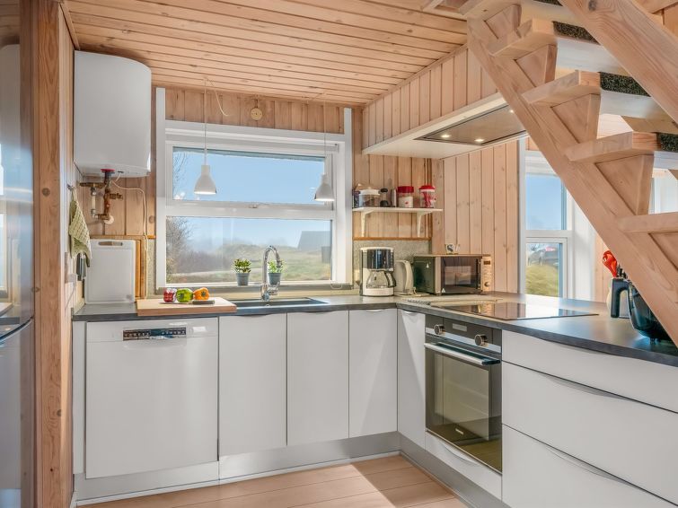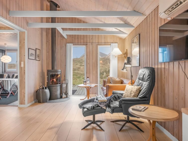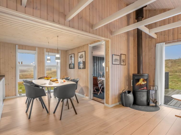 "Casandra" - 600m from the sea in Western Jutland", 3 rom hus 100 m2. Passer for 4 voksne + 2 barn. Stue med, TV, radio, CD-spiller, stereoanlegg og DVD. 1 rom med, 1 dobbeltseng. 1 rom med, 1 dobbel sovesoffa. Kjøkken (stekeovn, oppvaskmaskin, 4 keramiske kokeplater, frys). Dusj/WC. øverste etasje: 1 rom med, 1 dobbeltseng. Terrasse 4 m2, dekt. Utsikt av havet. Fasiliteter: høy barnestol barneseng (ekstra). Internett (trådløs LAN [WLAN]). Max kjæledyr / hund tillatt 1 kjæledyr / hund tillatt.