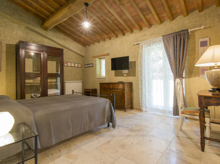 "Celeste", 8 rom hus 370 m2 på 2 etasjer. Antikt og smakfullt møbler: stue med, åpen peis, satelit-TV, stereoanlegg og air-conditioning. Utgang til terrassen. 1 dobblet rom med, dusj/WC. Utgang til hagen. Stort kjøkken (stekeovn, oppvaskmaskin, 5 gassbrennere, brødrister, vannkoker, mikrobølgeovn, frys, elektrisk kaffemaskin) med, åpen peis, spisebord og air-conditioning. Utgang til terrassen. Dusj/WC. øverste etasje: 5 dobbelt rom, hvert rom med, dusj/WC. 1 rom med 2 senger og dusj/WC. Vedoppvarming. Naturstengulv. Terrasse 160 m2, terrasse 70 m2, med tak. Terrassemøbler, grill, liggestoler (10), lager. Vakker panoramautsikt av landskapet. Fasiliteter: vaskemaskin, safe, strykejern, myggnett, høy barnestol barneseng for barn opp til 2 år. Internett (trådløs LAN [WLAN], gratis). Parkeringsplass (10 Biler) ved hbrukt. Vennligst merk: røykfri bolig. Kjæledyr/små hunder tillatt 2 kjæledyr/små hunder tillatt.