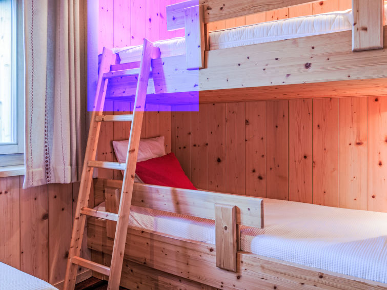 "Chalet Flocon de Neige", 5 rom hytte 184 m2 på 2 etasjer. Komfortabelt møbler: stor stue/spisestue med panoramavindu med, vedovn, spisehjørne, kabel-TV og DVD. Åpent kjøkken (stekeovn, oppvaskmaskin, 6 induksjonskomfyr, brødrister, vannkoker, mikrobølgeovn, elektrisk kaffemaskin, Internet(Nespresso), ekstra, raclettegrill, kjøkkenøy (ost)). Sep. WC. Oppvarming. I underetasje: 2 dobbelt rom, hvert rom med 2 senger (90 cm lengde 200 cm). 1 barnerom med 1 seng (90 cm lengde 190 cm), 1 x 2 køysenger (90 cm, lengde 190 cm), kabel-TV, flatskjerms TV og DVD. 1 dobblet rom med, 1 dobbeltseng (160 cm, lengde 190 cm), dusj/WC, kabel-TV og flatskjerms TV. Bad/WC, dusj/WC. Balkong, beliggenhet mot nord, terrasse, beliggenhet mot vest og beliggenhet mot nord. Terrassemøbler, grill, liggestoler (2). Meget vakker utsikt av fjellene og dalen. Fasiliteter: vaskemaskin, tørketrommel, høy barnestol barneseng, hårføner. Internett (trådløs LAN [WLAN], gratis). Parkeringsplass (3 Biler). Vennligst merk: røykfritt hus.