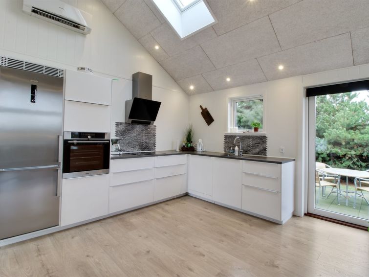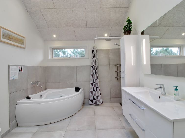 "Cholena" - 700m from the sea in NE Jutland", 4 rom hus 122 m2. Passer for 8 voksne. Stue med, TV og radio. 1 rom med, 1 dobbeltseng. 1 rom med, 1 dobbeltseng. 1 rom med, 1 dobbeltseng. 1 rom med, 1 x 2 køysenger. Kjøkken (stekeovn, oppvaskmaskin, 4 induksjonskomfyr, mikrobølgeovn, frys). 2 dusjer/WC, boblebad. Terrasse 24 m2, dekt. Fasiliteter: høy barnestol barneseng (ekstra). Internett (trådløs LAN [WLAN]). Vennligst merk: røykfri bolig. Max kjæledyr / hund tillatt 1 kjæledyr / hund tillatt.