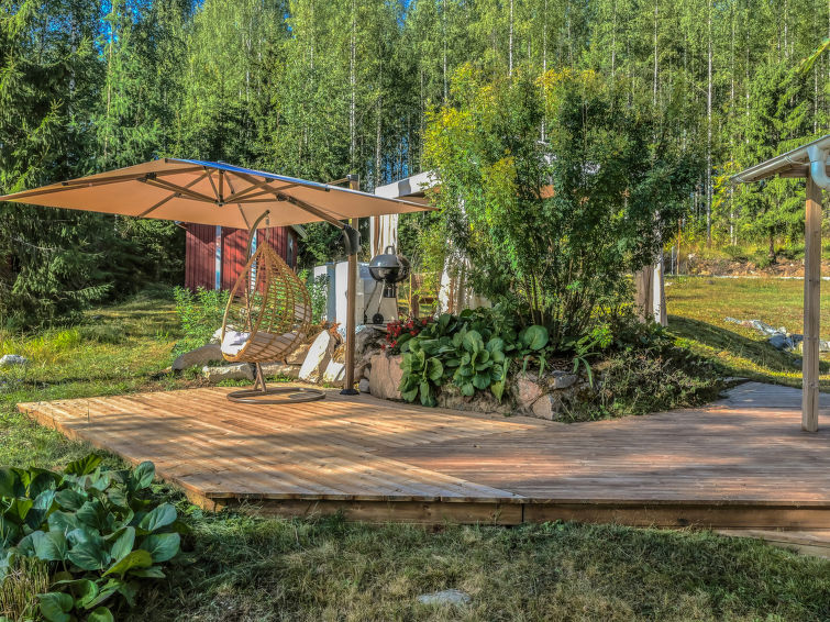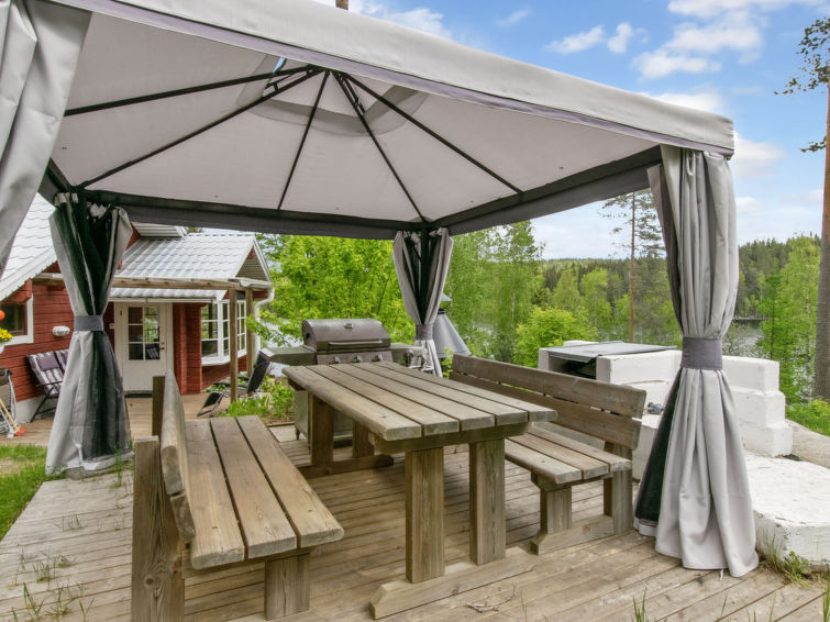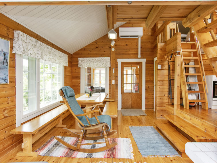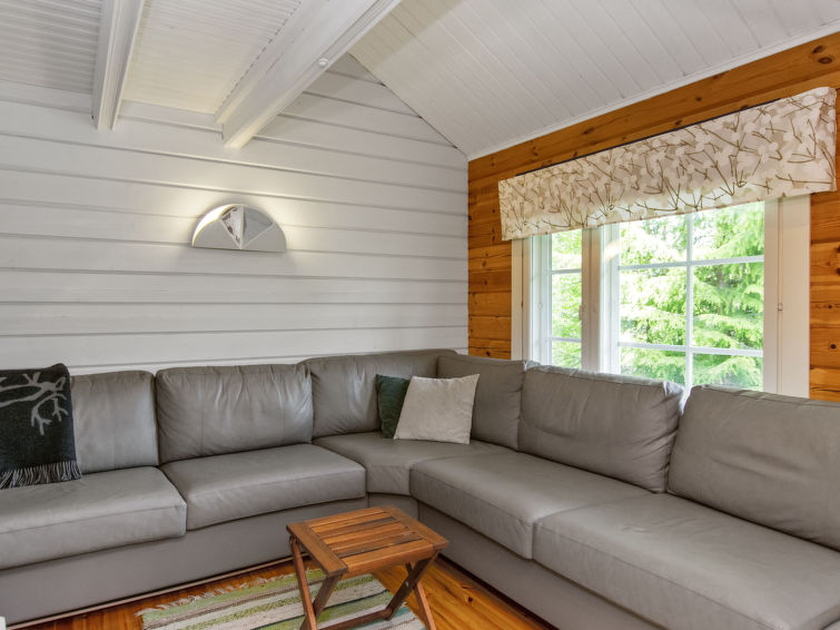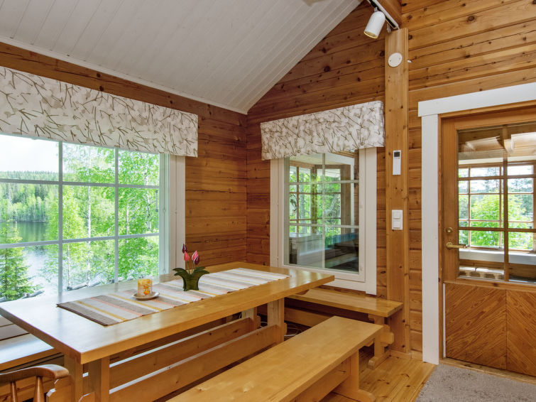 It is not allowed to charge electric car from the sockets of the cottage. Cozy log cottage by the Lake Pölläkkäjärvi in Heinävesi near Kolovesi National Park, 4 km from the shore of the church. Slope to the shore, which can make it difficult for people with reduced mobility to go to the shore. Shore faces to the east. Good possibilities for grilling; both gas grill and charcoal grill. There is satellite antenna with about 500 channels (20 Russian channels) and blu-ray and WLAN. Good possibilities for fishing, an own boat. Rapid fishing at Kerma rapids 16 km from the cottage. 4 km to the Kolovesi national park (Kirkkoranta).