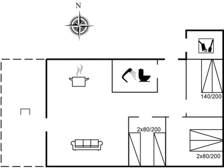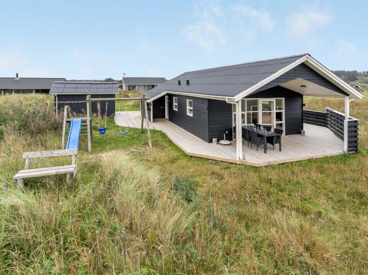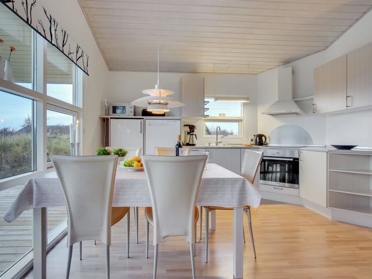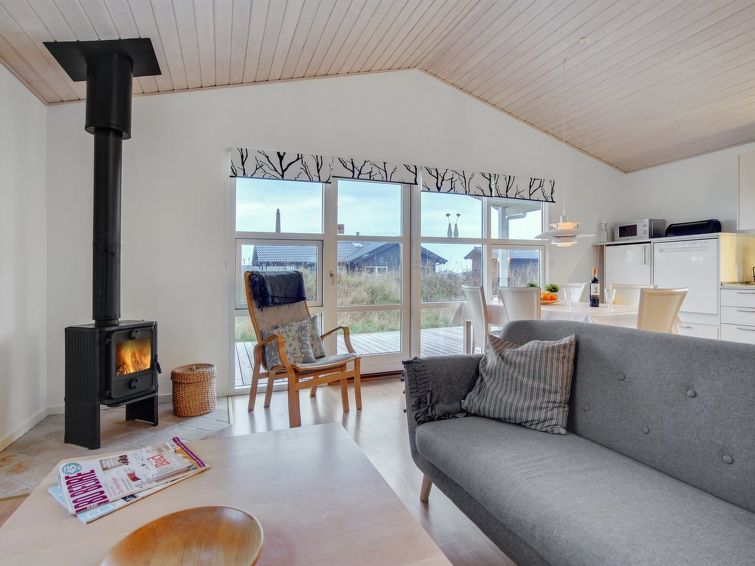 "Clarissa" - 300m from the sea in NW Jutland", 3 rom hus 70 m2. Passer for 6 voksne + 1 barn. Stue med, TV og stereoanlegg. 1 rom med, 1 dobbeltseng. 1 rom med, 1 dobbeltseng. 1 rom med 2 senger. Kjøkken (stekeovn, oppvaskmaskin, 4 keramiske kokeplater, mikrobølgeovn, frys). Dusj/WC. Terrasse 20 m2, dekt. Fasiliteter: høy barnestol barneseng (ekstra). Internett (trådløs LAN [WLAN]). Vennligst merk: røykfri bolig.