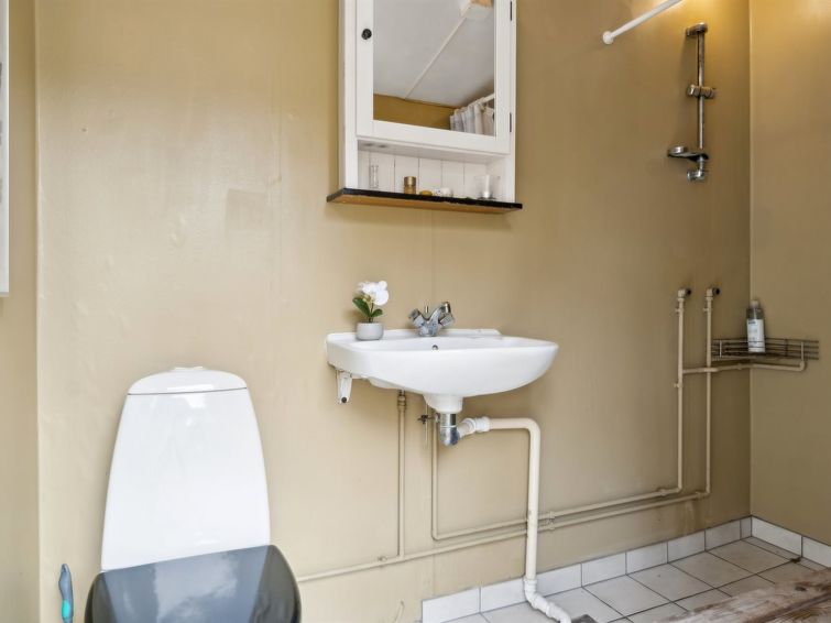 Enmannsbolig, bygget i 1955. 300 m fra sjøen. Privat: uberørt tomt 4'800 m2. Terrasse (40 m2), grill, grillplass, lekeplass (huske), parkering ved hbrukt. Daglivarehandel 3.5 km. Eieren godtar ikke noen ungdomsgrupper.