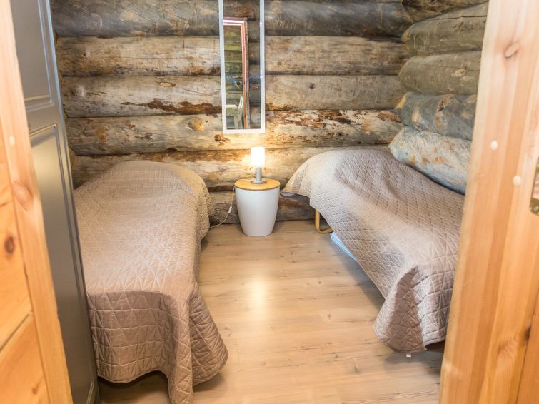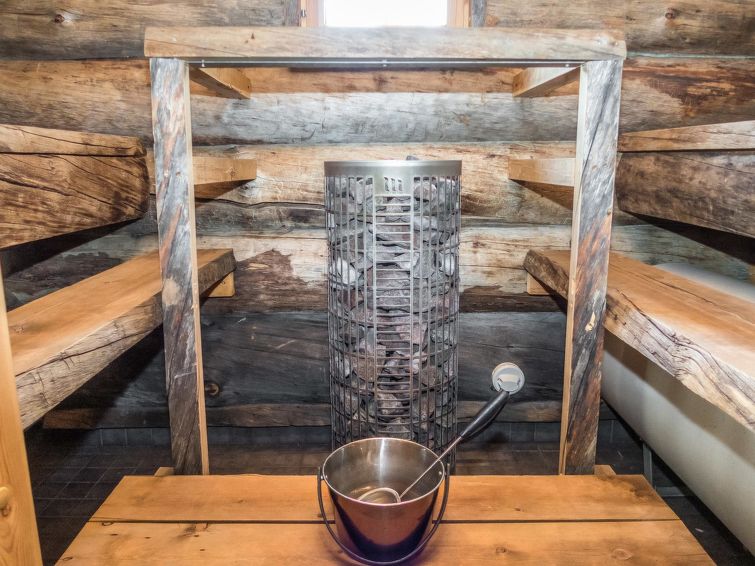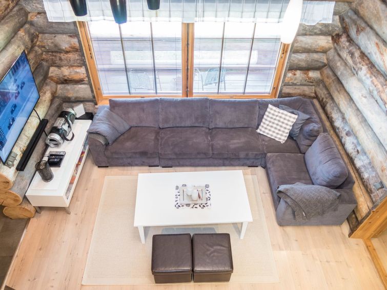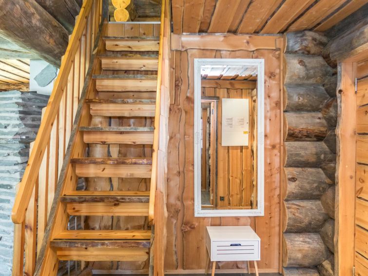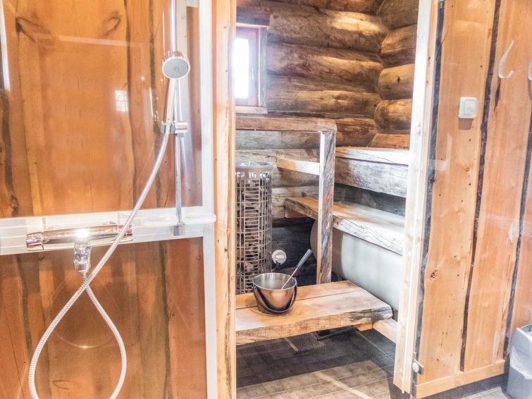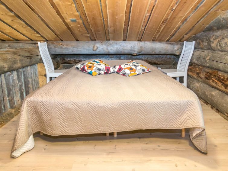 On the ground floor, there are three bedrooms, kitchen, living room, WC and sauna. The steams in the sauna cannot be overstated! Several people can dine at the kitchen table at once, and it is comfortable to sit on the sofa in the living room to enjoy the warmth of the fireplace. The upper floor loft has sleeping accommodations for four people.