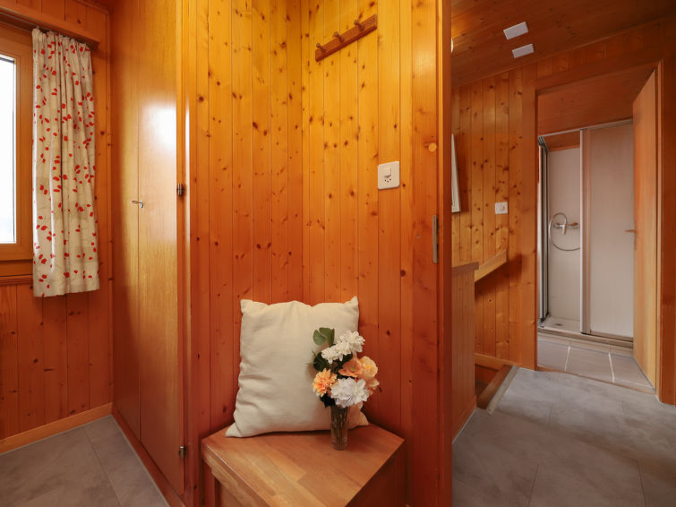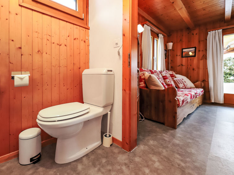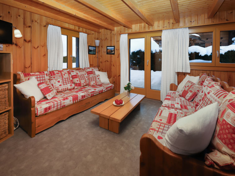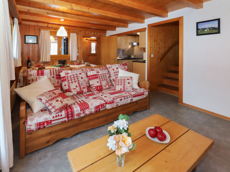 "Coucordin", 4 rom hytte 73 m2 på 2 etasjer. Vakkert møbler: stue/spisestue med, satelit-TV, kabel-TV, stereoanlegg og elektrisk oppvarming. Utgang til terrassen. Lite, åpent kjøkken (stekeovn, oppvaskmaskin, 4 induksjonskomfyr, brødrister, vannkoker, raclettegrill (chinoise)). Sep. WC. øverste etasje: 1 rom med, 1 dobbeltseng (160 cm, lengde 200 cm). 1 litet rom med, 1 x 1 køysenger (90 cm, lengde 200 cm). 1 rom med, 1 dobbeltseng (180 cm, lengde 200 cm). Dusj/WC, dobbel servant. Liten balkong, østvendt beliggenhet, terrasse 20 m2, beliggenhet mot sør-øst. Terrassemøbler, grill. Fasiliteter: vaskemaskin, tørketrommel, hårføner. Internett (trådløs LAN [WLAN], gratis). Parkeringsplass (2 Biler). Vennligst merk: røykfritt hus.