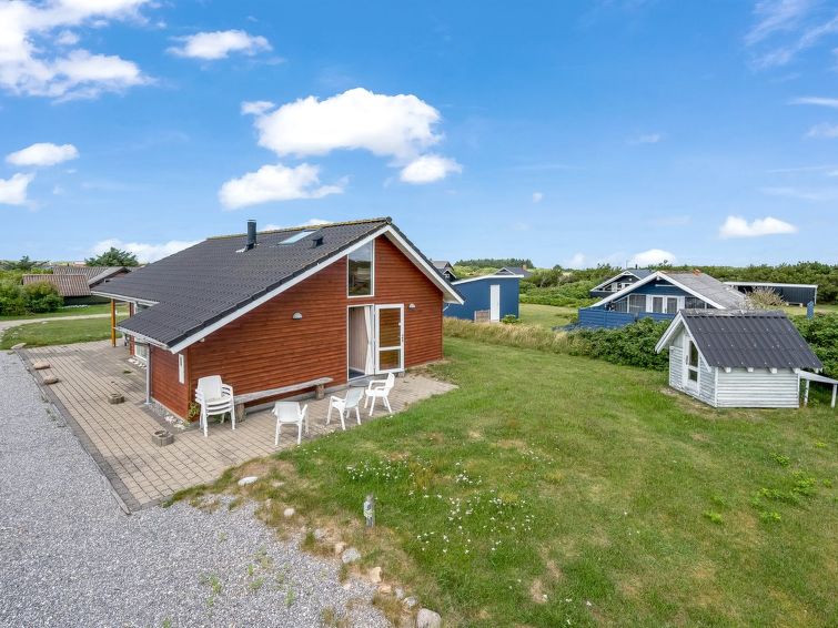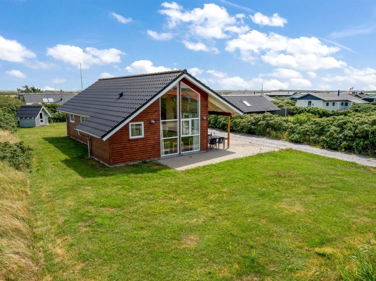 "Cristine" - 400m from the sea in Western Jutland", 3 rom hus 77 m2. Passer for 6 voksne. Stue med, TV, video, CD-spiller, stereoanlegg og DVD. 1 rom med, 1 dobbeltseng. 1 rom med 2 senger. 1 rom med, 1 dobbeltseng. Kjøkken (stekeovn, oppvaskmaskin, 4 keramiske kokeplater, mikrobølgeovn, frys). Dusj/WC, boblebad. Terrasse 8 m2, dekt. Fasiliteter: høy barnestol. Internett (trådløs LAN [WLAN]).